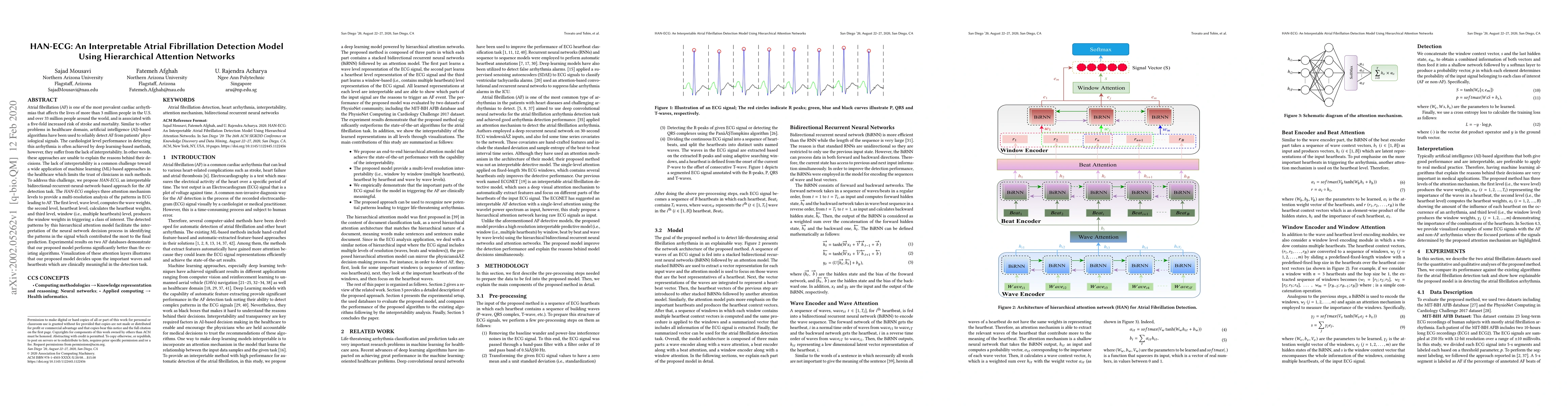The paper proposes HAN-ECG, an interpretable atrial fibrillation detection model using hierarchical attention networks, which outperforms existing algorithms by providing multi-resolution analysis through three attention levels and facilitating the interpretability of its decision-making process.