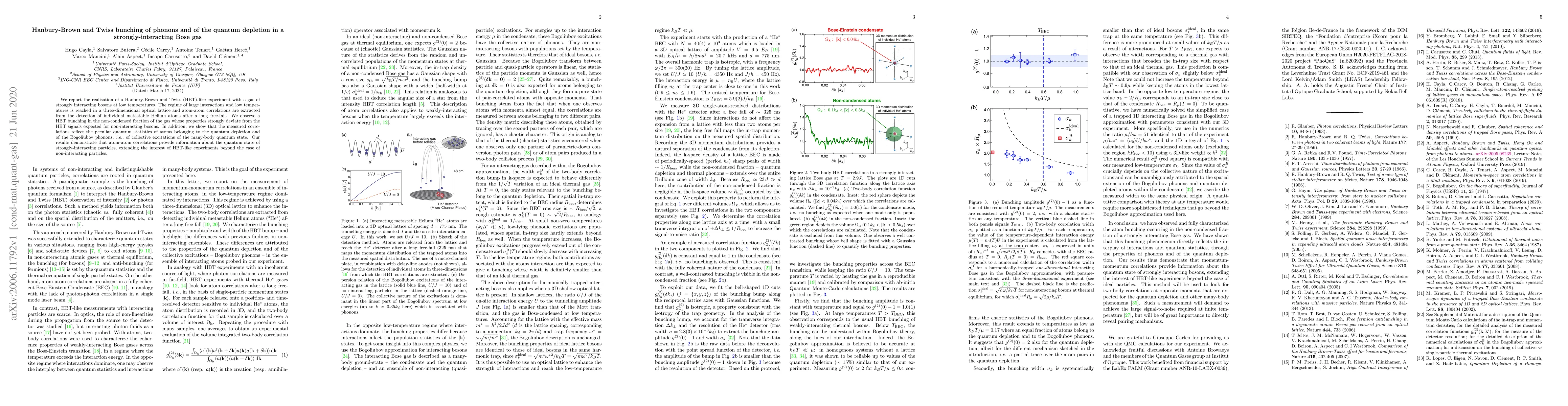 Researchers created a Hanbury-Brown and Twiss experiment with strongly interacting bosons at low temperatures, observing bunching in the non-condensed gas and correlations that reflect the quantum state of atoms and phonons.