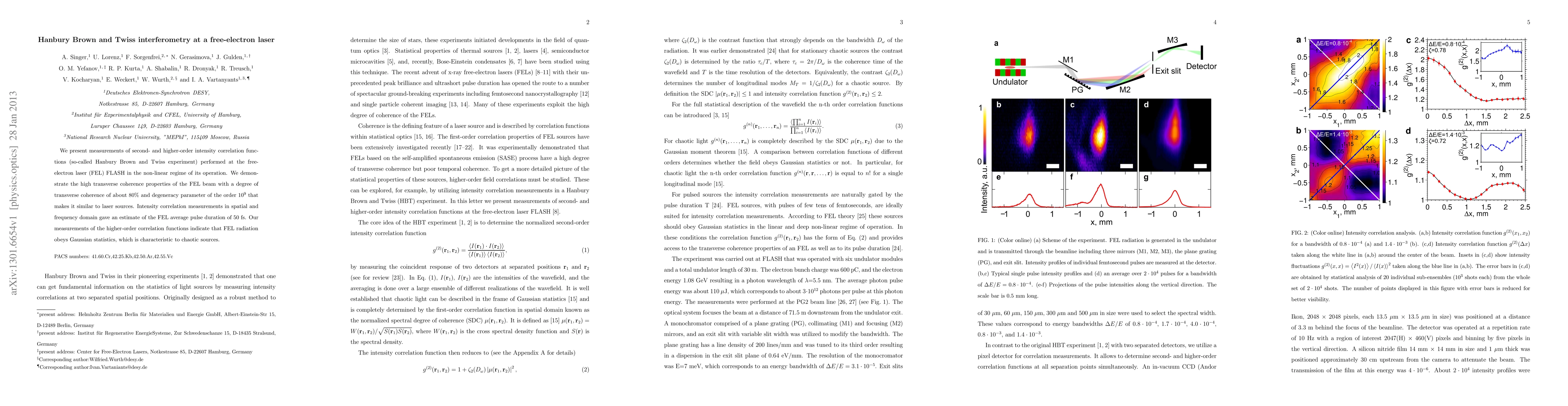 This paper reports on Hanbury Brown and Twiss interferometry measurements at the FLASH free-electron laser, revealing high transverse coherence and a degree of coherence comparable to laser sources. The study also finds that FEL radiation follows Gaussian statistics typical of chaotic sources.