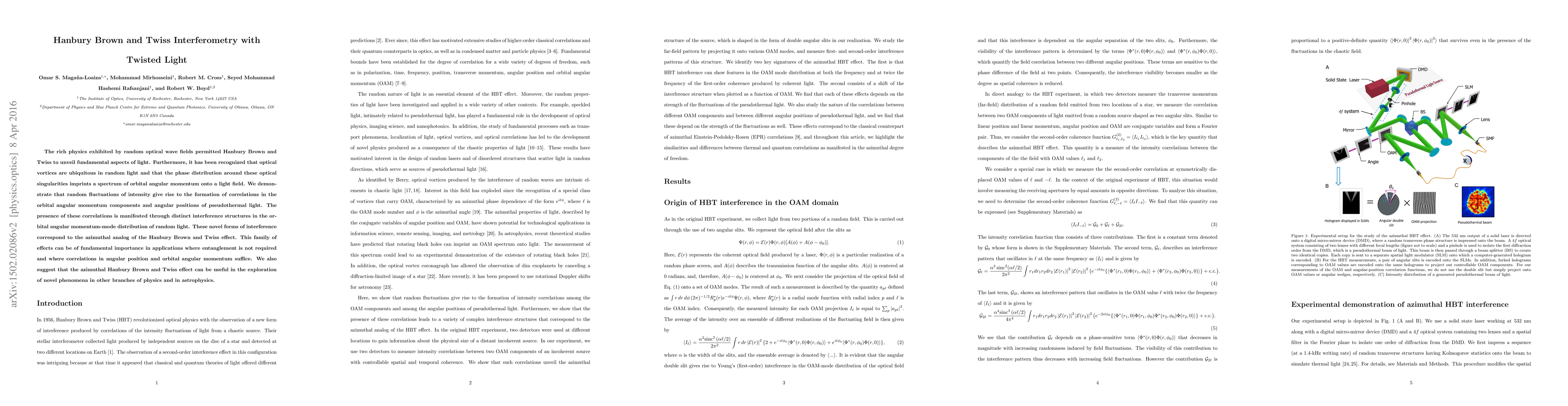 This paper demonstrates how random optical wave fields lead to correlations in the orbital angular momentum and angular positions of twisted light, revealing new interference structures akin to the Hanbury Brown and Twiss effect, with potential applications in fields where entanglement is unnecessary.