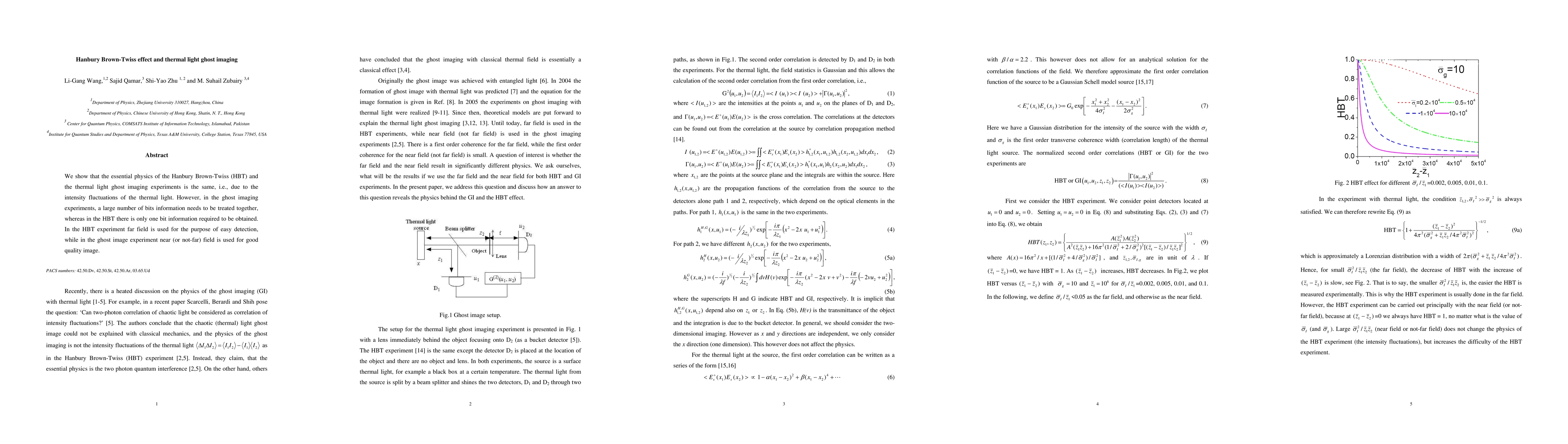 Summary: The paper demonstrates that the Hanbury Brown-Twiss effect and thermal light ghost imaging share fundamental physics based on intensity fluctuations of thermal light. While HBT uses far field for simple detection, ghost imaging employs near field for high-quality images, requiring the processing of more information bits.
