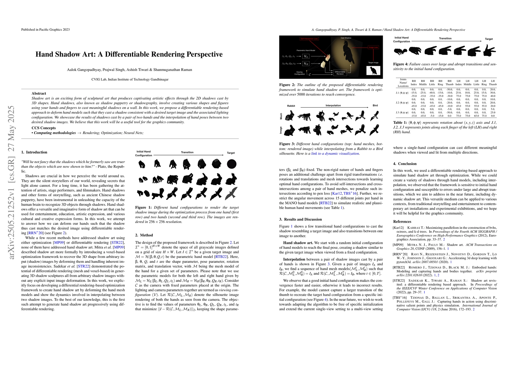 Researchers propose a differentiable rendering approach to create realistic hand shadows in 3D models, enabling shadow puppetry-style art with consistent lighting conditions.