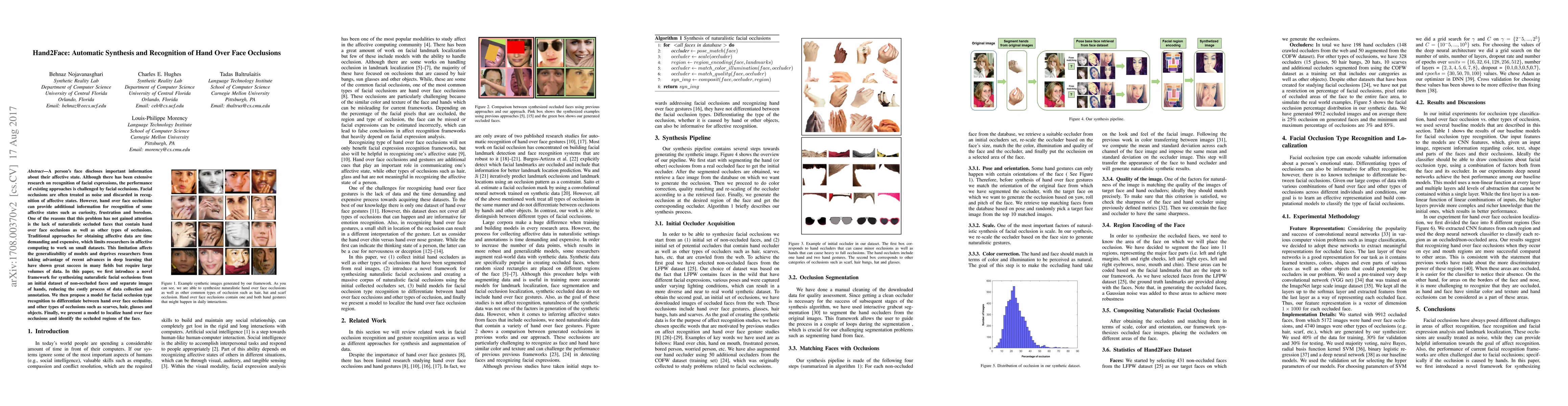 This paper introduces a framework for synthesizing naturalistic facial occlusions, including hand over face occlusions, to enhance affective state recognition. It proposes models for recognizing different occlusion types and localizing hand over face occlusions, aiming to improve the generalizability of affective computing models by reducing data collection costs.