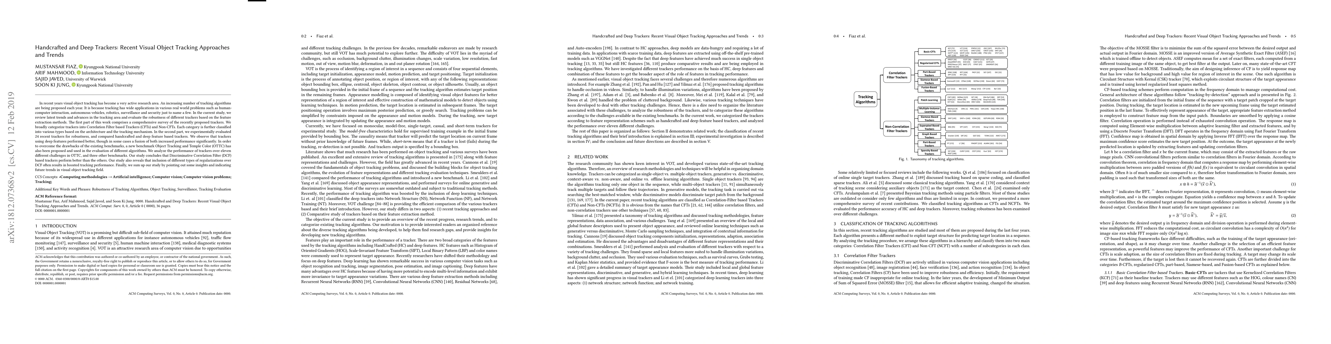 This paper reviews recent advances in visual object tracking, categorizing and evaluating trackers based on feature extraction methods. It finds that deep feature-based trackers generally outperform handcrafted ones, though hybrid approaches can further enhance performance. A new benchmark, OTTC, is introduced to address existing limitations, and Discriminative Correlation Filter (DCF) based trackers are shown to be most effective. The study concludes with insights and future trends in the field.