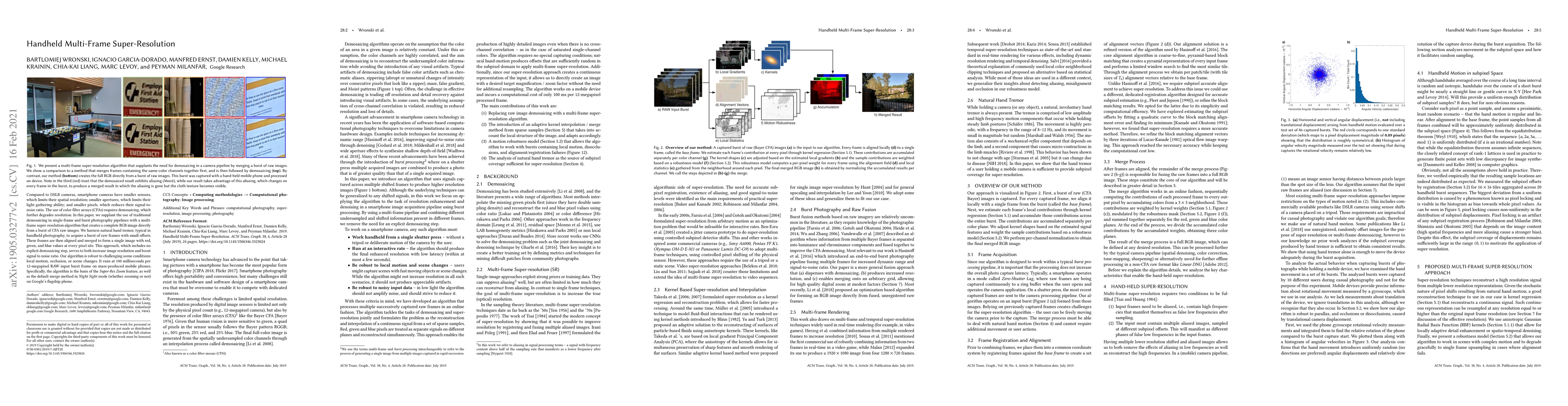Compared to DSLR cameras, smartphone cameras have smaller sensors, which limits their spatial resolution; smaller apertures, which limits their light gathering ability; and smaller pixels, which reduces their signal-to noise ratio. The use of color filter arrays (CFAs) requires demosaicing, which further degrades resolution. In this paper, we supplant the use of traditional demosaicing in single-frame and burst photography pipelines with a multiframe super-resolution algorithm that creates a complete RGB image directly from a burst of CFA raw images. We harness natural hand tremor, typical in handheld photography, to acquire a burst of raw frames with small offsets. These frames are then aligned and merged to form a single image with red, green, and blue values at every pixel site. This approach, which includes no explicit demosaicing step, serves to both increase image resolution and boost signal to noise ratio. Our algorithm is robust to challenging scene conditions: local motion, occlusion, or scene changes. It runs at 100 milliseconds per 12-megapixel RAW input burst frame on mass-produced mobile phones. Specifically, the algorithm is the basis of the Super-Res Zoom feature, as well as the default merge method in Night Sight mode (whether zooming or not) on Google's flagship phone.