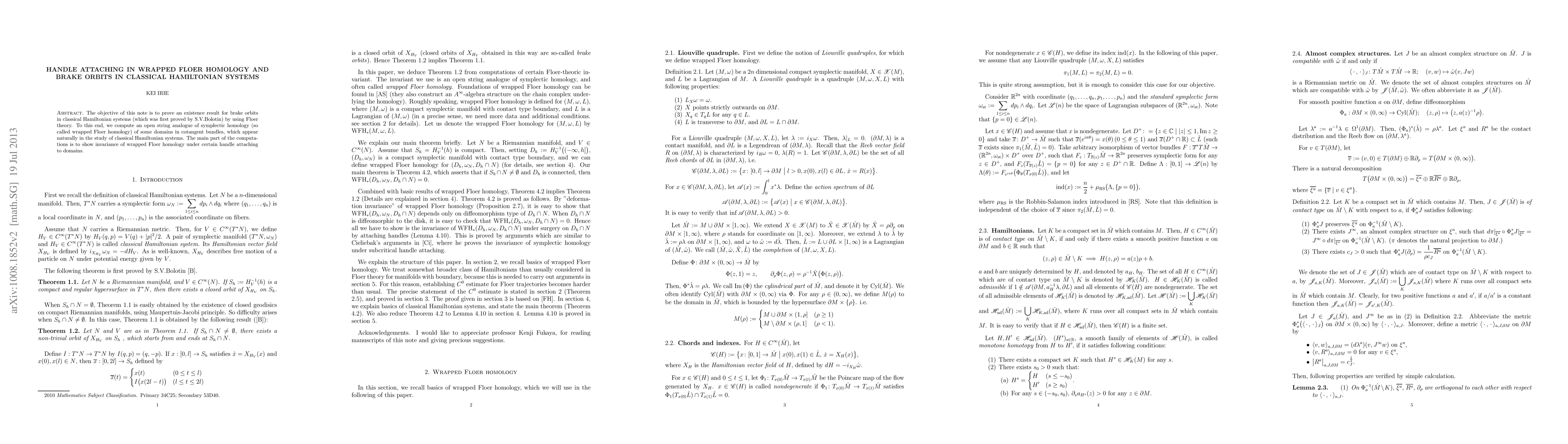 This paper proves the existence of brake orbits in classical Hamiltonian systems using Floer theory by computing wrapped Floer homology in cotangent bundles. It demonstrates the invariance of wrapped Floer homology under specific handle attaching operations.