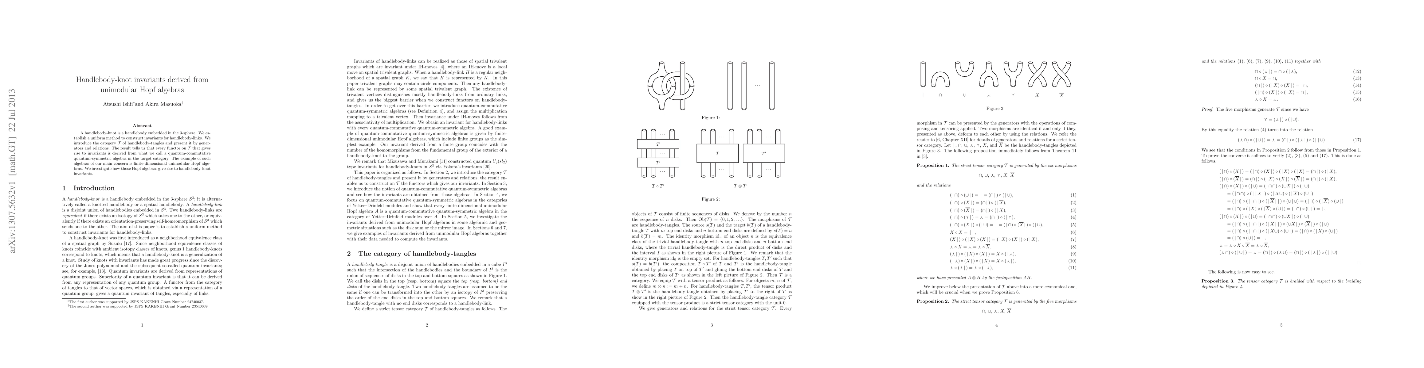 A handlebody-knot is a handlebody embedded in the 3-sphere. We establish a uniform method to construct invariants for handlebody-links. We introduce the category $\mathcal{T}$ of handlebody-tangles and present it by generators and relations. The result tells us that every functor on $\mathcal{T}$ that gives rise to invariants is derived from what we call a quantum-commutative quantum-symmetric algebra in the target category. The example of such algebras of our main concern is finite-dimensional unimodular Hopf algebras. We investigate how those Hopf algebras give rise to handlebody-knot invariants.