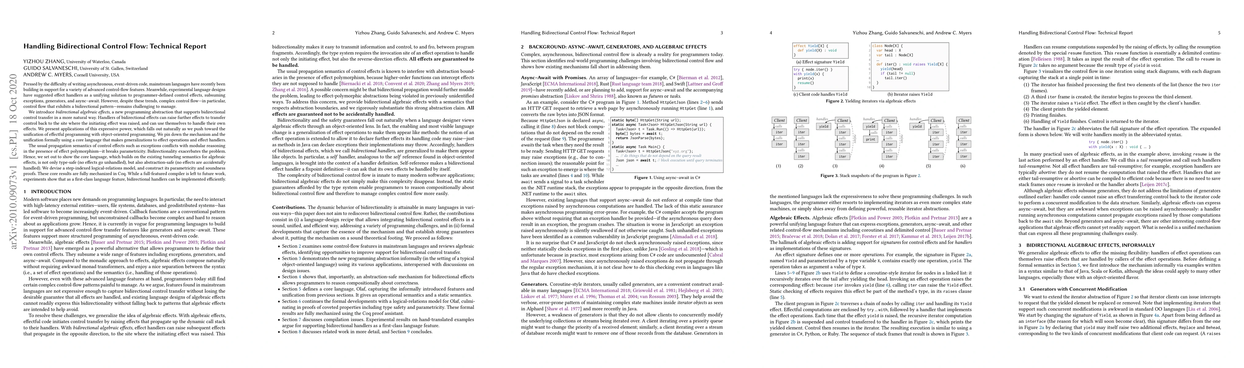 This paper introduces bidirectional algebraic effects as a new programming abstraction to manage complex bidirectional control flow, unifying various control effects like exceptions and async-await. It presents a core language that ensures type-safety and abstraction-safety through a step-indexed logical-relations model, with proofs fully mechanized in Coq, and demonstrates the efficiency of implementing bidirectional handlers.