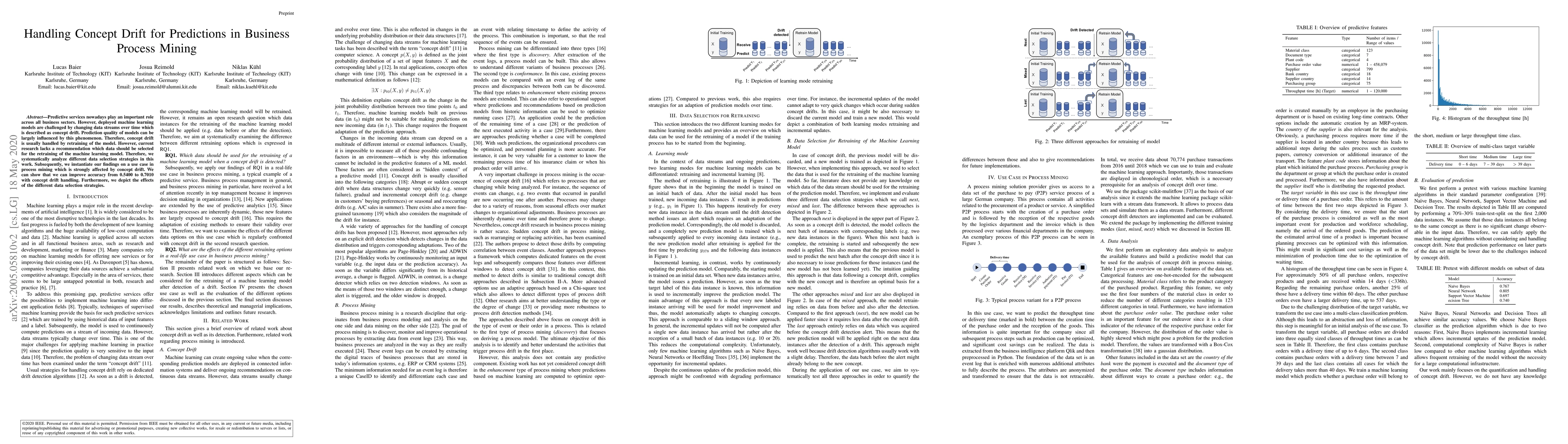 This paper investigates strategies for handling concept drift in predictive models used in business process mining, focusing on selecting appropriate data for model retraining. The study demonstrates improved prediction accuracy from 0.5400 to 0.7010 by systematically analyzing various data selection methods.