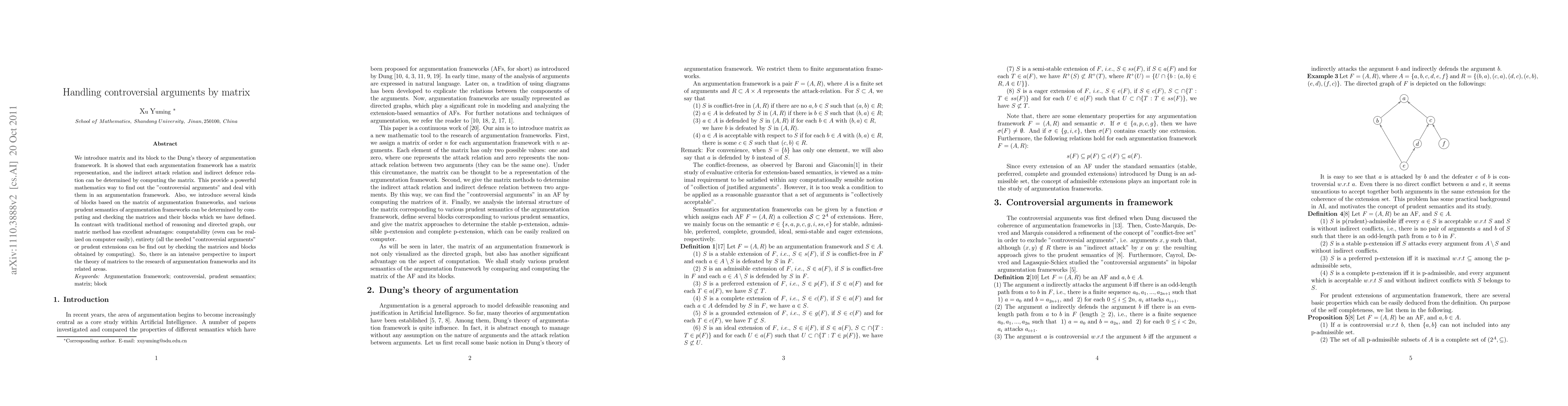 Researchers introduce a new method to analyze argumentation frameworks using matrices, providing a powerful mathematical approach to identify controversial arguments and explore different semantics of argumentation frameworks.