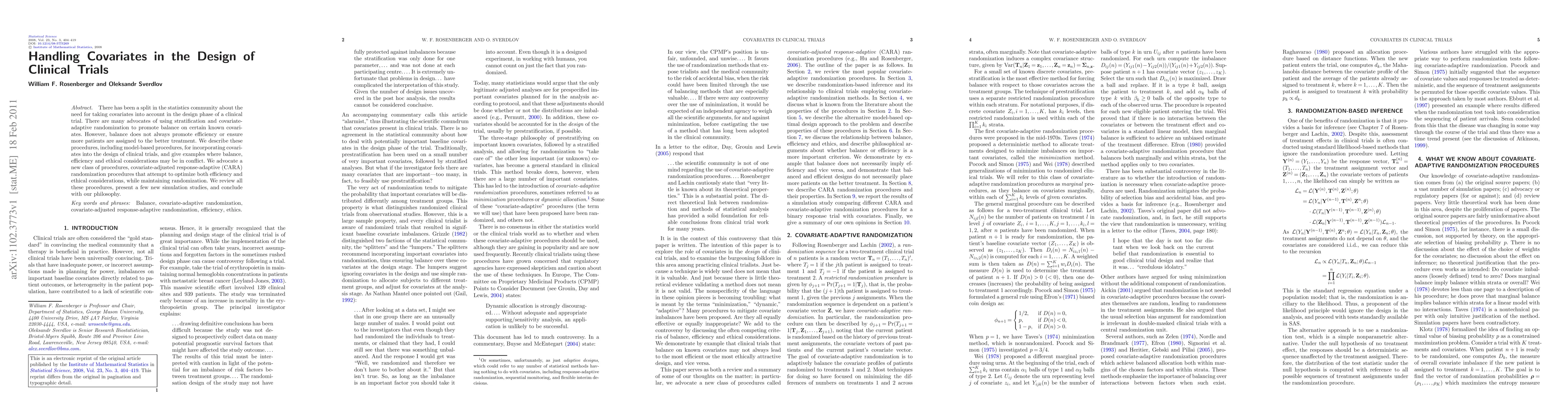 There has been a split in the statistics community about the need for taking covariates into account in the design phase of a clinical trial. There are many advocates of using stratification and covariate-adaptive randomization to promote balance on certain known covariates. However, balance does not always promote efficiency or ensure more patients are assigned to the better treatment. We describe these procedures, including model-based procedures, for incorporating covariates into the design of clinical trials, and give examples where balance, efficiency and ethical considerations may be in conflict. We advocate a new class of procedures, covariate-adjusted response-adaptive (CARA) randomization procedures that attempt to optimize both efficiency and ethical considerations, while maintaining randomization. We review all these procedures, present a few new simulation studies, and conclude with our philosophy.