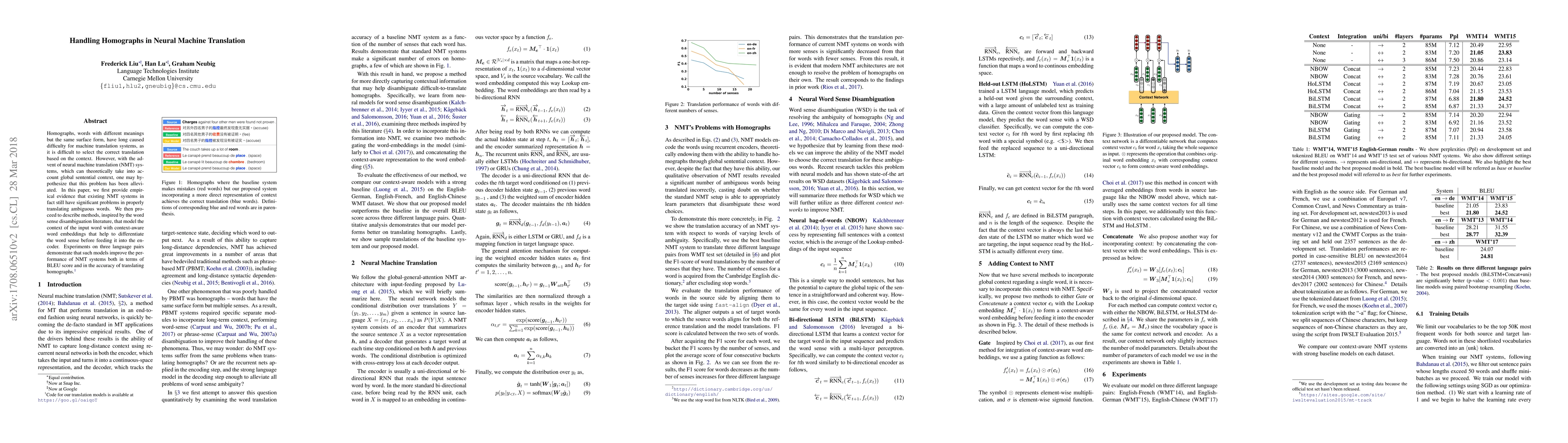 Existing NMT systems struggle with homographs due to context lack, but new methods using context-aware word embeddings improve translation performance for ambiguous words.