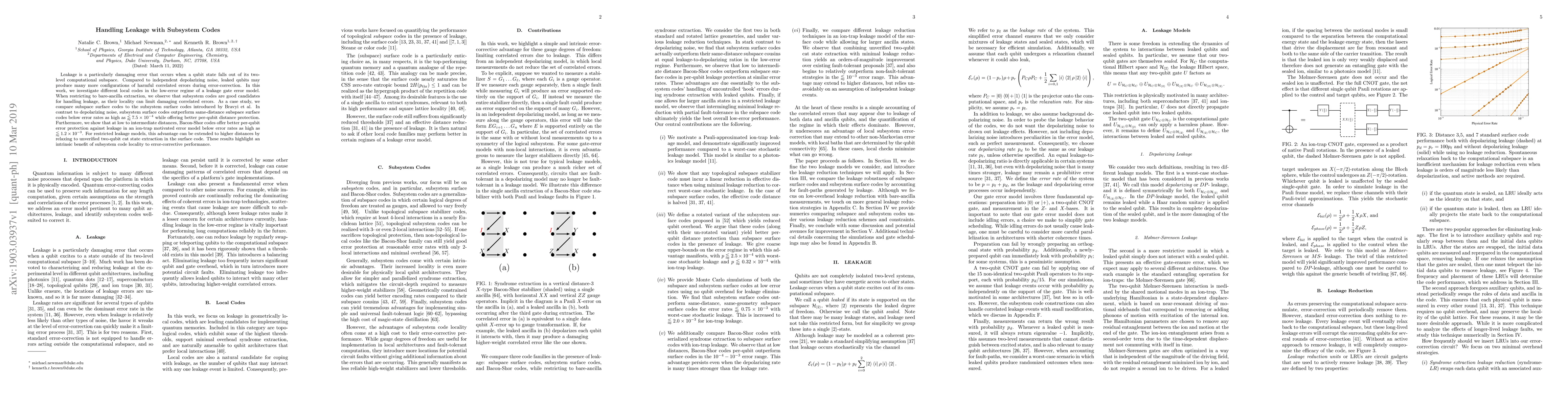 Leakage is a particularly damaging error that occurs when a qubit state falls out of its two-level computational subspace. Compared to independent depolarizing noise, leaked qubits may produce many more configurations of harmful correlated errors during error-correction. In this work, we investigate different local codes in the low-error regime of a leakage gate error model. When restricting to bare-ancilla extraction, we observe that subsystem codes are good candidates for handling leakage, as their locality can limit damaging correlated errors. As a case study, we compare subspace surface codes to the subsystem surface codes introduced by Bravyi et al. In contrast to depolarizing noise, subsystem surface codes outperform same-distance subspace surface codes below error rates as high as $\lessapprox 7.5 \times 10^{-4}$ while offering better per-qubit distance protection. Furthermore, we show that at low to intermediate distances, Bacon-Shor codes offer better per-qubit error protection against leakage in an ion-trap motivated error model below error rates as high as $\lessapprox 1.2 \times 10^{-3}$. For restricted leakage models, this advantage can be extended to higher distances by relaxing to unverified two-qubit cat state extraction in the surface code. These results highlight an intrinsic benefit of subsystem code locality to error-corrective performance.