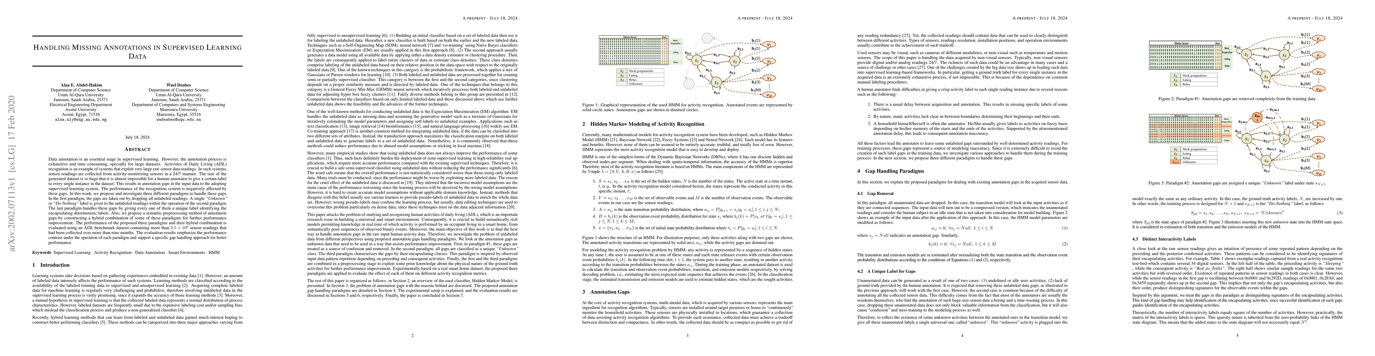 Data annotation is an essential stage in supervised learning. However, the annotation process is exhaustive and time consuming, specially for large datasets. Activities of Daily Living (ADL) recognition is an example of systems that exploit very large raw sensor data readings. In such systems, sensor readings are collected from activity-monitoring sensors in a 24/7 manner. The size of the generated dataset is so huge that it is almost impossible for a human annotator to give a certain label to every single instance in the dataset. This results in annotation gaps in the input data to the adopting supervised learning system. The performance of the recognition system is negatively affected by these gaps. In this work, we propose and investigate three different paradigms to handle these gaps. In the first paradigm, the gaps are taken out by dropping all unlabeled readings. A single "Unknown" or "Do-Nothing" label is given to the unlabeled readings within the operation of the second paradigm. The last paradigm handles these gaps by giving every one of them a unique label identifying the encapsulating deterministic labels. Also, we propose a semantic preprocessing method of annotation gaps by constructing a hybrid combination of some of these paradigms for further performance improvement. The performance of the proposed three paradigms and their hybrid combination is evaluated using an ADL benchmark dataset containing more than $2.5\times 10^6$ sensor readings that had been collected over more than nine months. The evaluation results emphasize the performance contrast under the operation of each paradigm and support a specific gap handling approach for better performance.