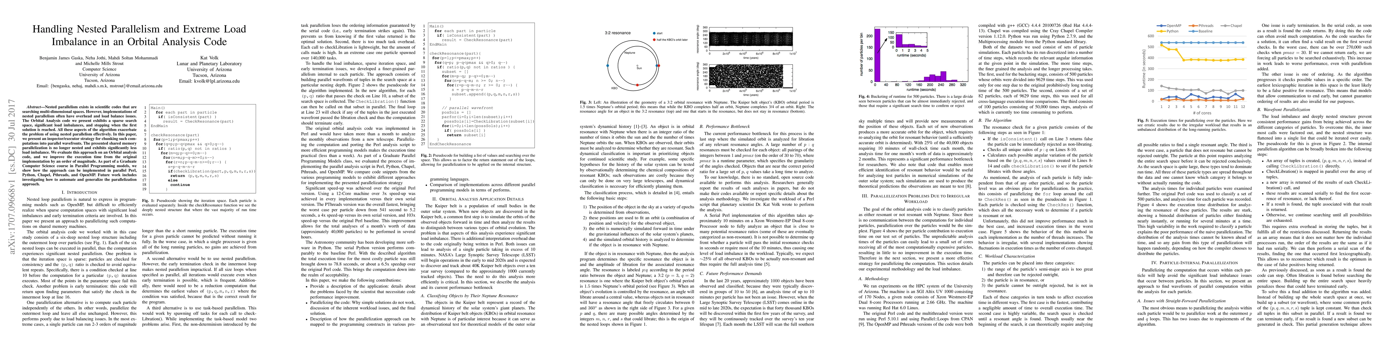 Nested parallelism exists in scientific codes that are searching multi-dimensional spaces. However, implementations of nested parallelism often have overhead and load balance issues. The Orbital Analysis code we present exhibits a sparse search space, significant load imbalances, and stopping when the first solution is reached. All these aspects of the algorithm exacerbate the problem of using nested parallelism effectively. In this paper, we present an inspector/executor strategy for chunking such computations into parallel wavefronts. The presented shared memory parallelization is no longer nested and exhibits significantly less load imbalance. We evaluate this approach on an Orbital analysis code, and we improve the execution time from the original implementation by an order of magnitude. As part of a Graduate Computer Science course in Parallel Programming models, we show how the approach can be implemented in parallel Perl, Python, Chapel, Pthreads, and OpenMP. Future work includes investigating how to automate and generalize the parallelization approach.
