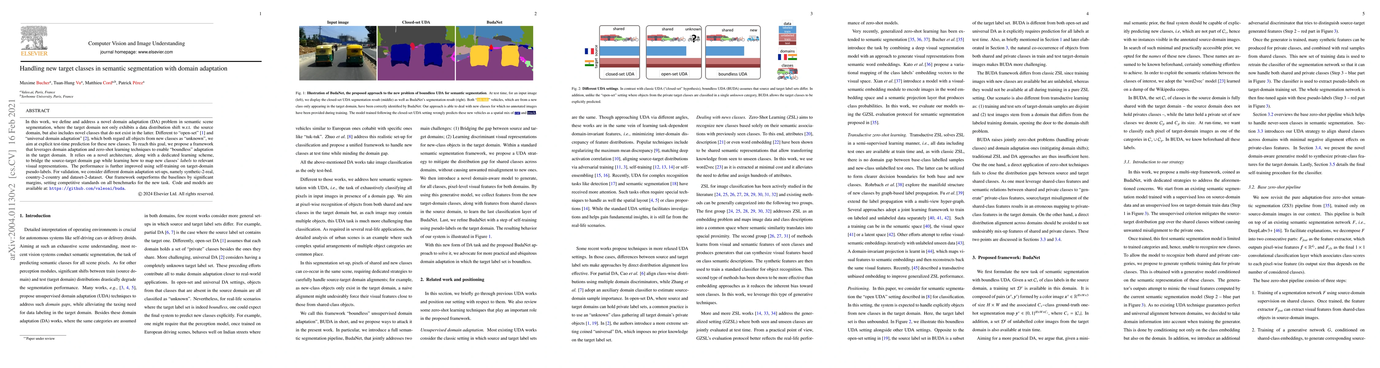 A new framework for semantic scene segmentation adapts to target domains with novel classes, outperforming baselines in benchmarks with significant margins.