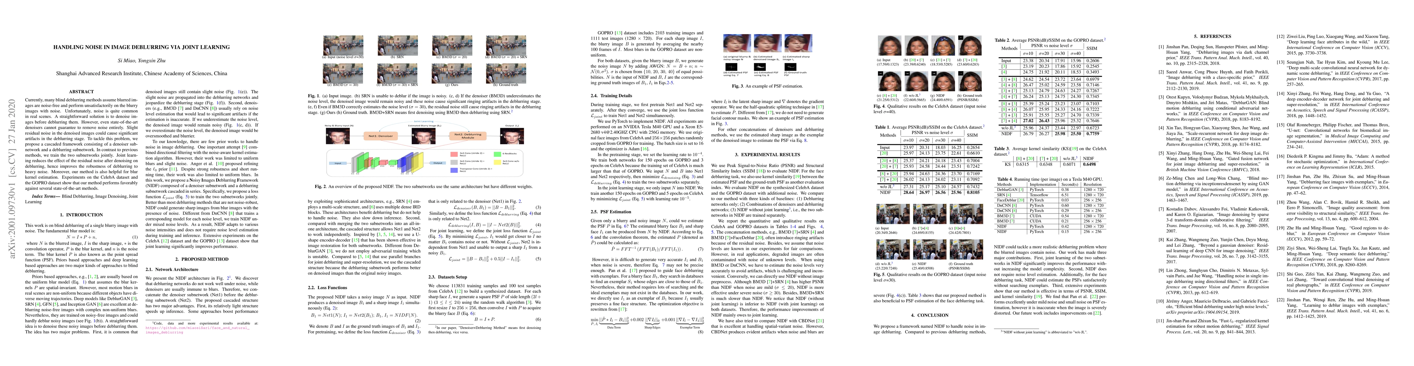 Currently, many blind deblurring methods assume blurred images are noise-free and perform unsatisfactorily on the blurry images with noise. Unfortunately, noise is quite common in real scenes. A straightforward solution is to denoise images before deblurring them. However, even state-of-the-art denoisers cannot guarantee to remove noise entirely. Slight residual noise in the denoised images could cause significant artifacts in the deblurring stage. To tackle this problem, we propose a cascaded framework consisting of a denoiser subnetwork and a deblurring subnetwork. In contrast to previous methods, we train the two subnetworks jointly. Joint learning reduces the effect of the residual noise after denoising on deblurring, hence improves the robustness of deblurring to heavy noise. Moreover, our method is also helpful for blur kernel estimation. Experiments on the CelebA dataset and the GOPRO dataset show that our method performs favorably against several state-of-the-art methods.