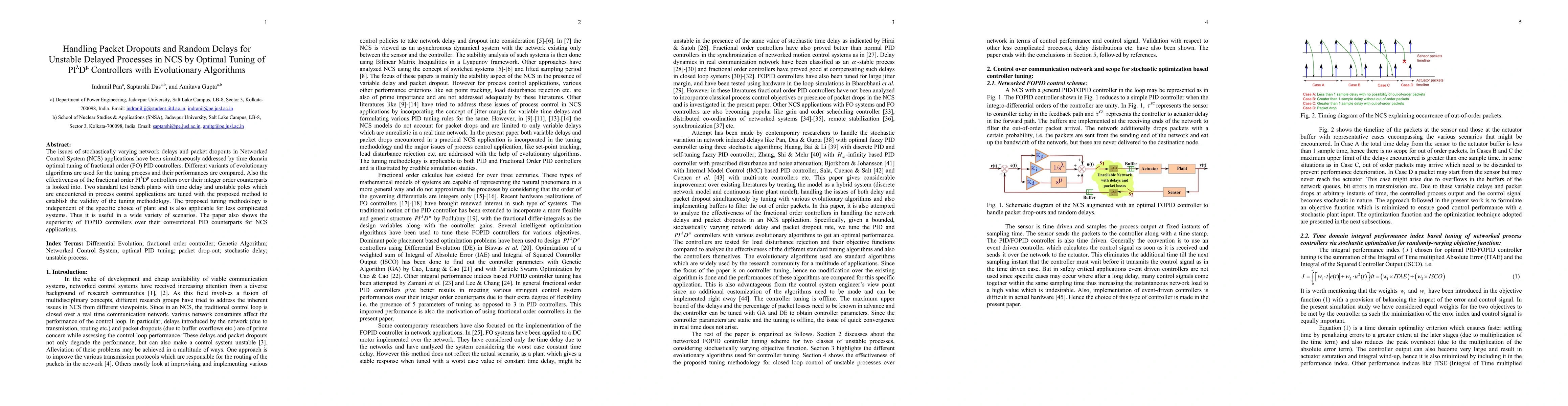 The issues of stochastically varying network delays and packet dropouts in Networked Control System (NCS) applications have been simultaneously addressed by time domain optimal tuning of fractional order (FO) PID controllers. Different variants of evolutionary algorithms are used for the tuning process and their performances are compared. Also the effectiveness of the fractional order PI{\lambda}D{\mu} controllers over their integer order counterparts is looked into. Two standard test bench plants with time delay and unstable poles which are encountered in process control applications are tuned with the proposed method to establish the validity of the tuning methodology. The proposed tuning methodology is independent of the specific choice of plant and is also applicable for less complicated systems. Thus it is useful in a wide variety of scenarios. The paper also shows the superiority of FOPID controllers over their conventional PID counterparts for NCS applications.