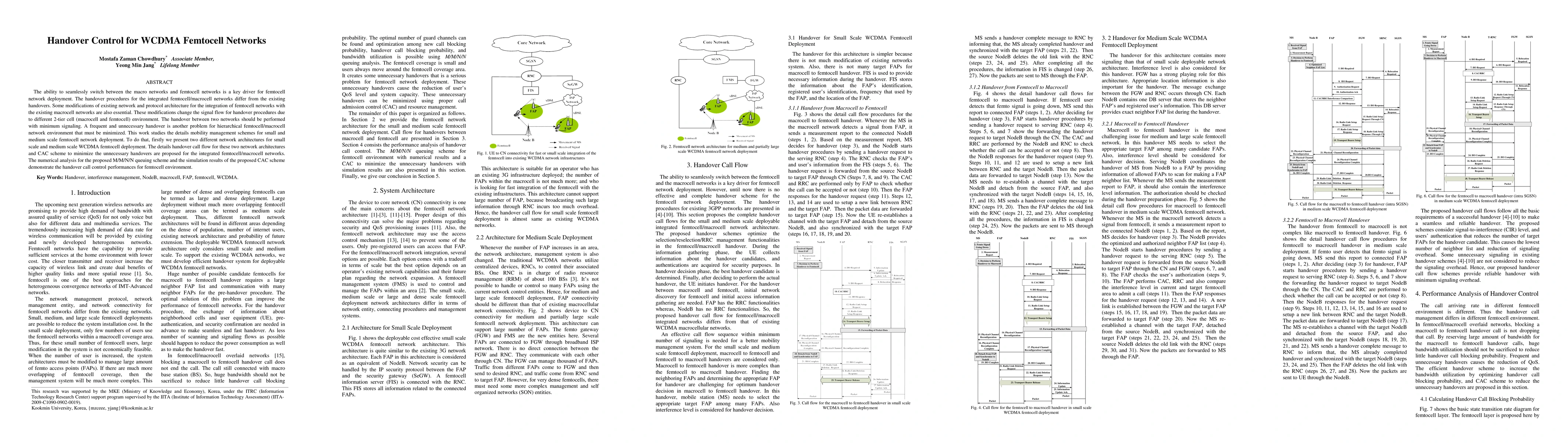 This paper explores handover control strategies for WCDMA femtocell networks, proposing two network architectures for small and medium scale deployments. The study introduces detailed handover call flows and a Call Admission Control (CAC) scheme to minimize unnecessary handovers, supported by numerical analysis and simulation results.