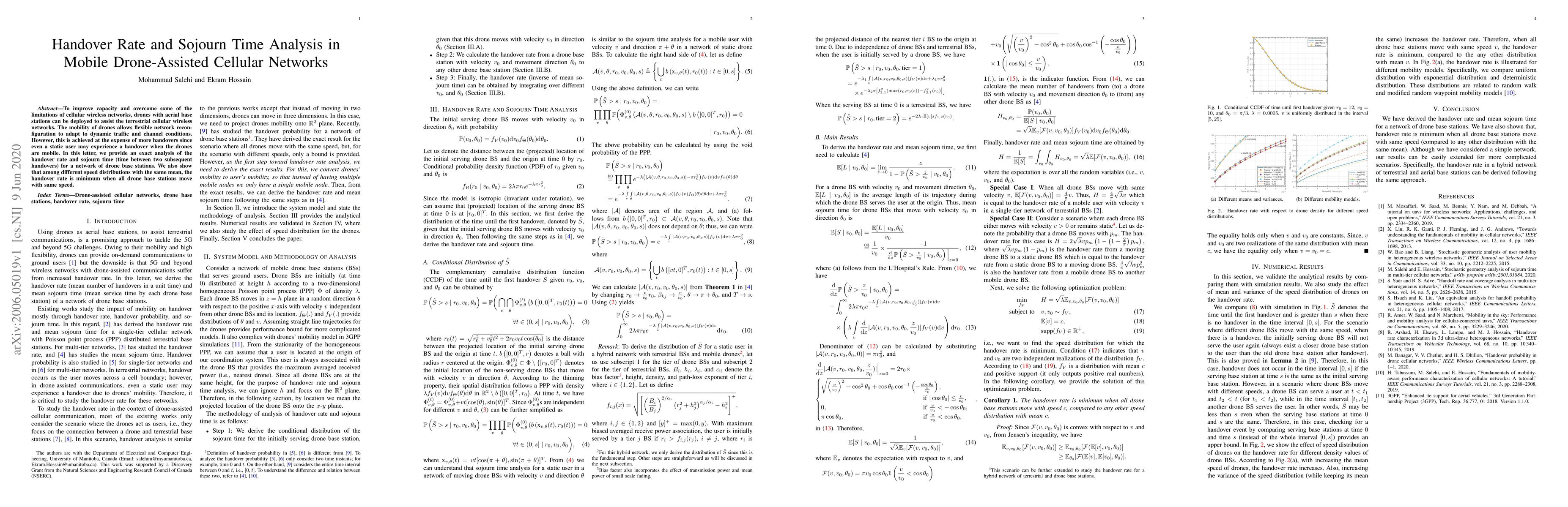 This paper analyzes the handover rate and sojourn time in mobile drone-assisted cellular networks, demonstrating that drone mobility enhances network flexibility but increases handovers. It finds that the minimum handover rate occurs when all drones move at the same speed, despite varying mean speeds.