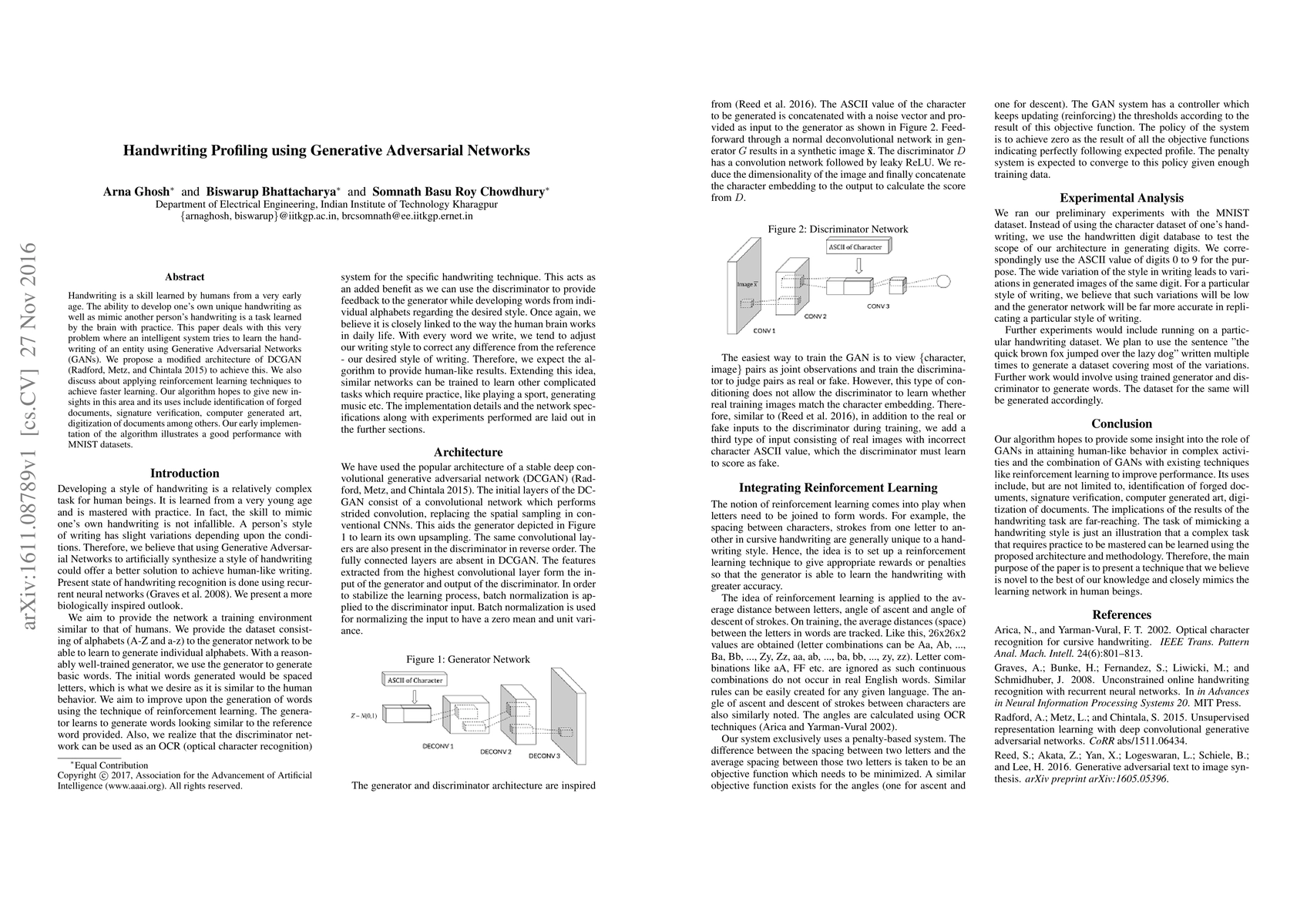 This paper proposes a modified Generative Adversarial Network (GAN) architecture to profile handwriting, aiming to identify forged documents and verify signatures. Early results using the MNIST dataset show promising performance.