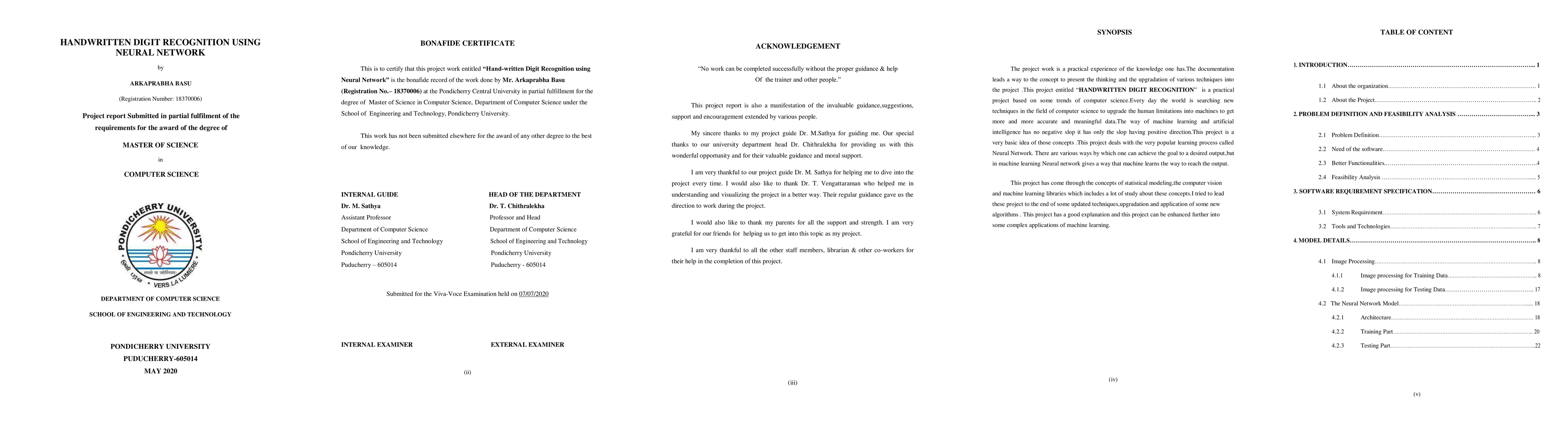 The project comes with the technique of OCR (Optical Character Recognition) which includes various research sides of computer science. The project is to take a picture of a character and process it up to recognize the image of that character like a human brain recognize the various digits. The project contains the deep idea of the Image Processing techniques and the big research area of machine learning and the building block of the machine learning called Neural Network. There are two different parts of the project. Training part comes with the idea of to train a child by giving various sets of similar characters but not the totally same and to say them the output of this is this. Like this idea one has to train the newly built neural network with so many characters. This part contains some new algorithm which is self-created and upgraded as the project need. The testing part contains the testing of a new dataset .This part always comes after the part of the training .At first one has to teach the child how to recognize the character .Then one has to take the test whether he has given right answer or not. If not, one has to train him harder by giving new dataset and new entries. Just like that one has to test the algorithm also. There are many parts of statistical modeling and optimization techniques which come into the project requiring a lot of modeling concept of statistics like optimizer technique and filtering process, that how the mathematics and prediction behind that filtering or the algorithms comes after or which result one actually needs to and ultimately for the prediction of a predictive model creation. Machine learning algorithm is built by concepts of prediction and programming.