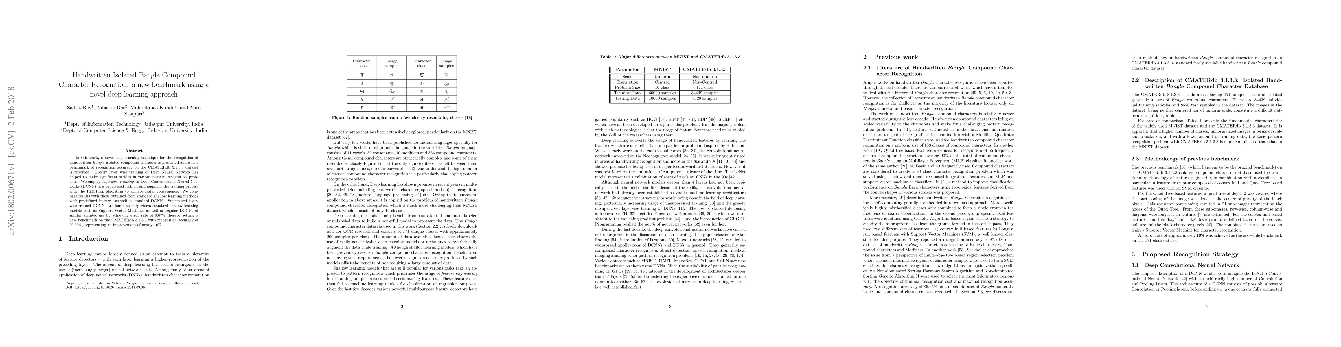 A novel deep learning approach sets a new benchmark for handwritten Bangla isolated compound character recognition, outperforming traditional methods with an accuracy of 90.33%.