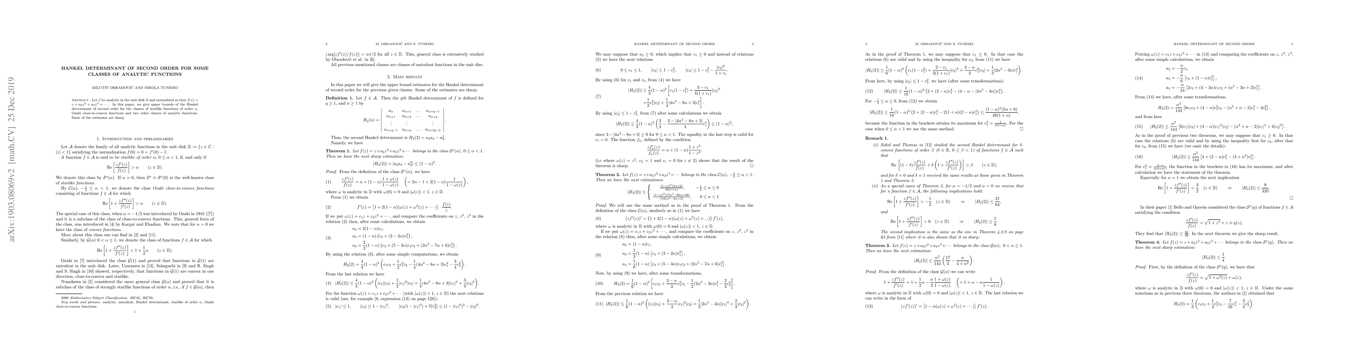 Let $f$ be analytic in the unit disk $\mathbb D$ and normalized so that $f(z)=z+a_2z^2+a_3z^3+\cdots$. In this paper, we give upper bounds of the Hankel determinant of second order for the classes of starlike functions of order $\alpha$, Ozaki close-to-convex functions and two other classes of analytic functions. Some of the estimates are sharp.