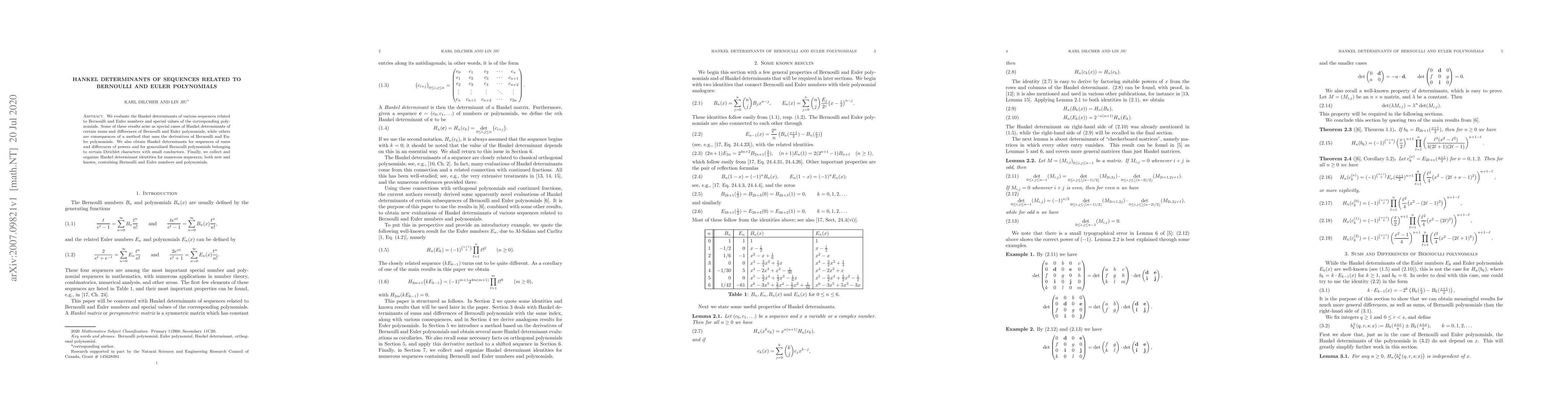 This paper evaluates Hankel determinants for sequences connected to Bernoulli and Euler numbers/polynomials, deriving results from polynomial derivatives and special cases of sum/difference sequences. It also presents identities for various new and known sequences involving these numbers and polynomials.