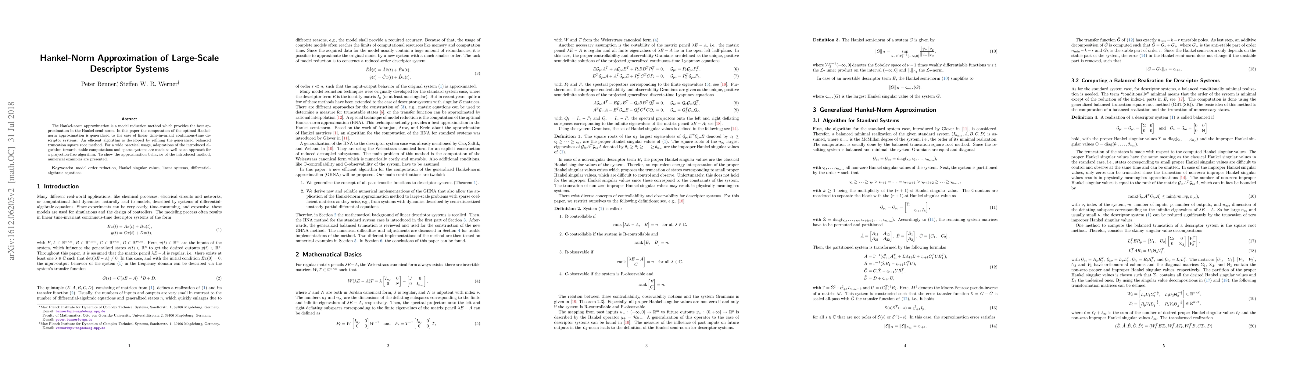 This paper introduces an efficient algorithm for approximating large-scale descriptor systems using Hankel-norm approximation, enabling practical usage in stable computations and sparse systems.