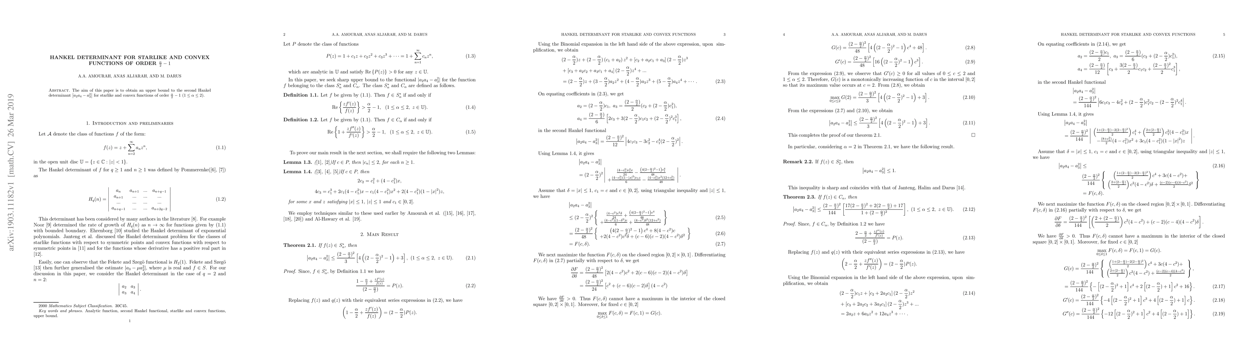 This research contributes to the understanding of Hankle determinants for starlike and convex functions, which is essential in complex analysis and has applications in various fields, including control theory and signal processing.