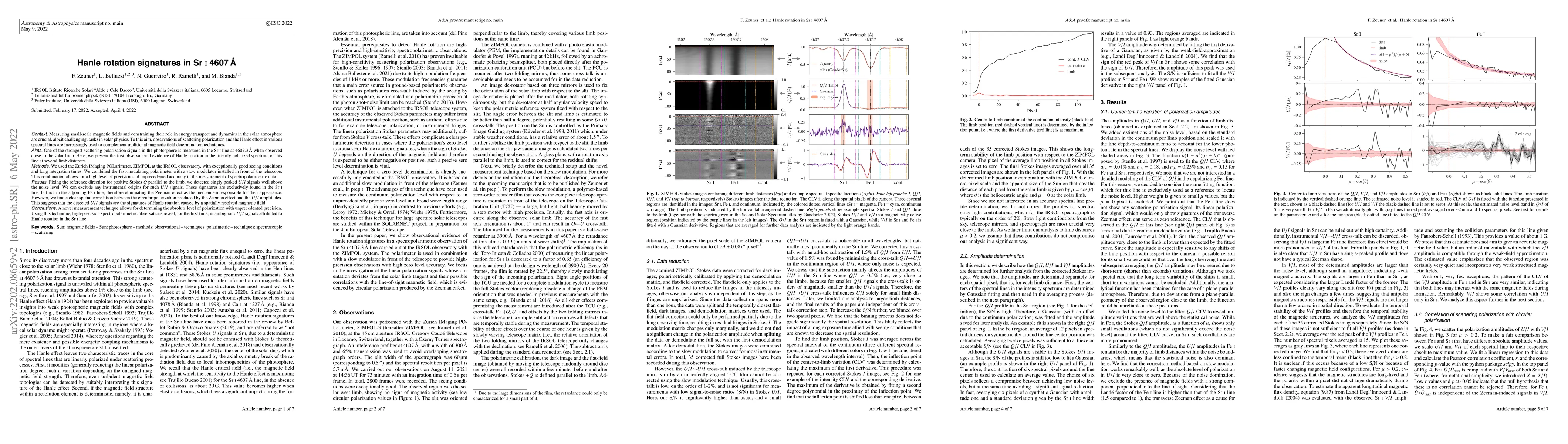 The research presents the first observational evidence of Hanle rotation in the linearly polarized spectrum of Sr I 4607 Å, using high-precision spectropolarimetric data from ZIMPOL at IRSOL. The signals are exclusive to the Sr I line, excluding the Zeeman effect, and correlate with circular polarization produced by Zeeman, suggesting magnetic field presence. This novel measurement technique allows for unprecedented precision in determining polarization levels.