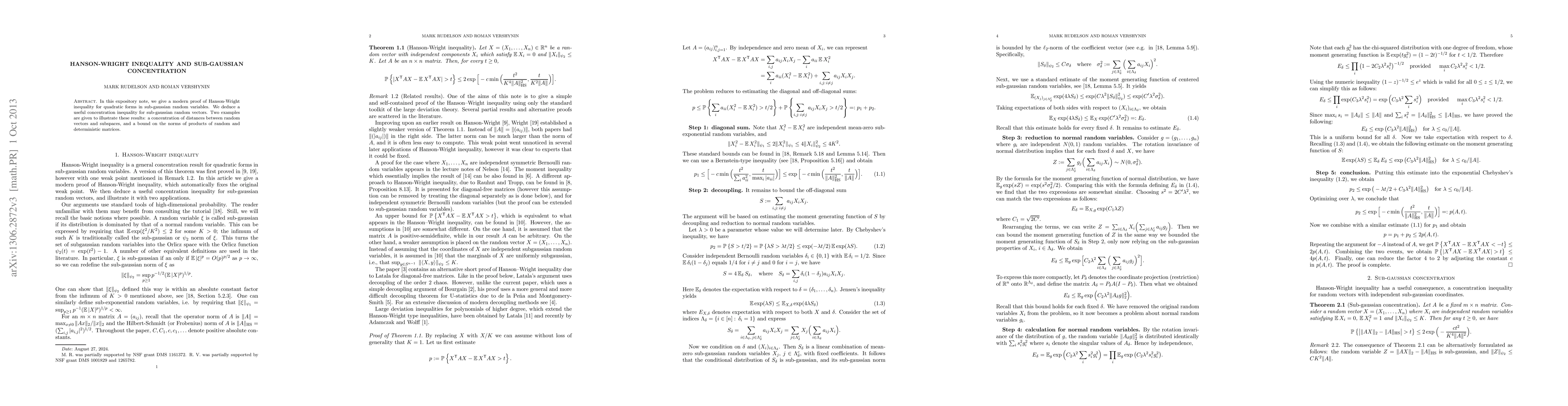 This paper presents a modern proof of the Hanson-Wright inequality for quadratic forms in sub-gaussian random variables and derives a useful concentration inequality for sub-gaussian random vectors. It also provides examples illustrating applications, including concentration of distances and bounds on matrix norms.