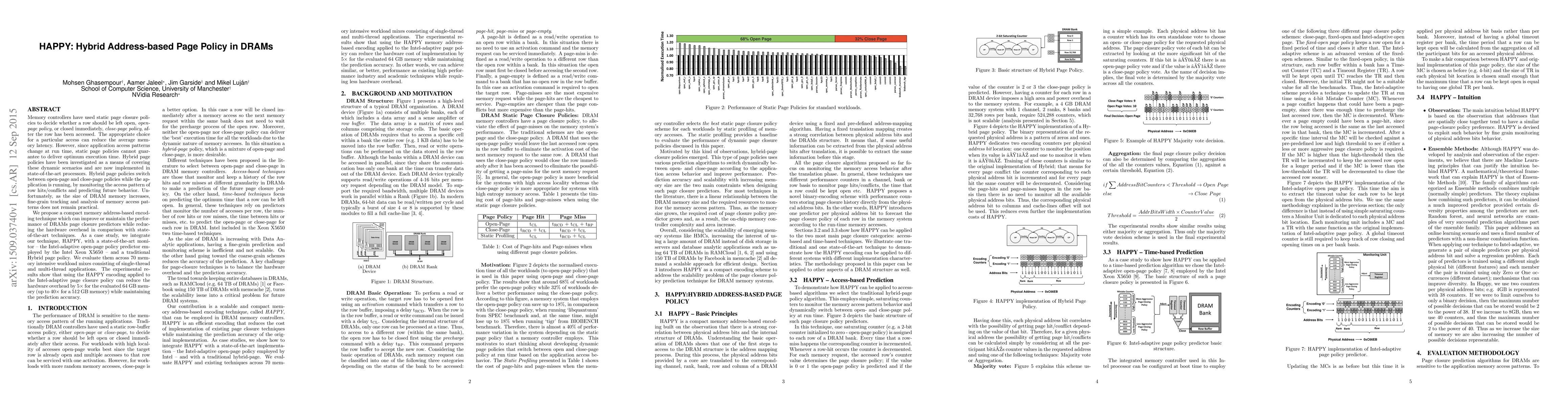 The research introduces HAPPY, a hybrid page policy for DRAMs that uses a compact address-based encoding to reduce hardware overhead while maintaining prediction accuracy. Evaluated alongside existing techniques, HAPPY cuts hardware overhead by 5X for 64GB memory (up to 40X for 512GB) in memory-intensive workloads, showcasing significant improvement in efficiency for large-scale DRAM systems.