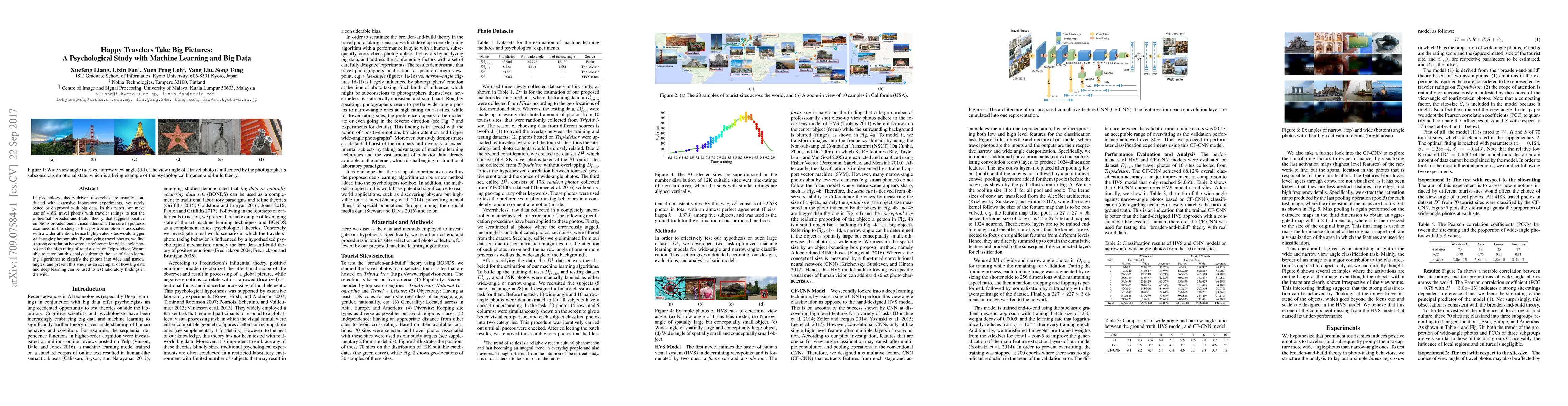 This paper uses big data and machine learning to test the "broaden-and-build" theory in psychology, which posits that positive emotions expand visual attention. By analyzing 418K travel photos and their ratings, the study finds a strong correlation between high-rated tourist sites and the preference for wide-angle photographs, demonstrating the potential of big data for psychological research.