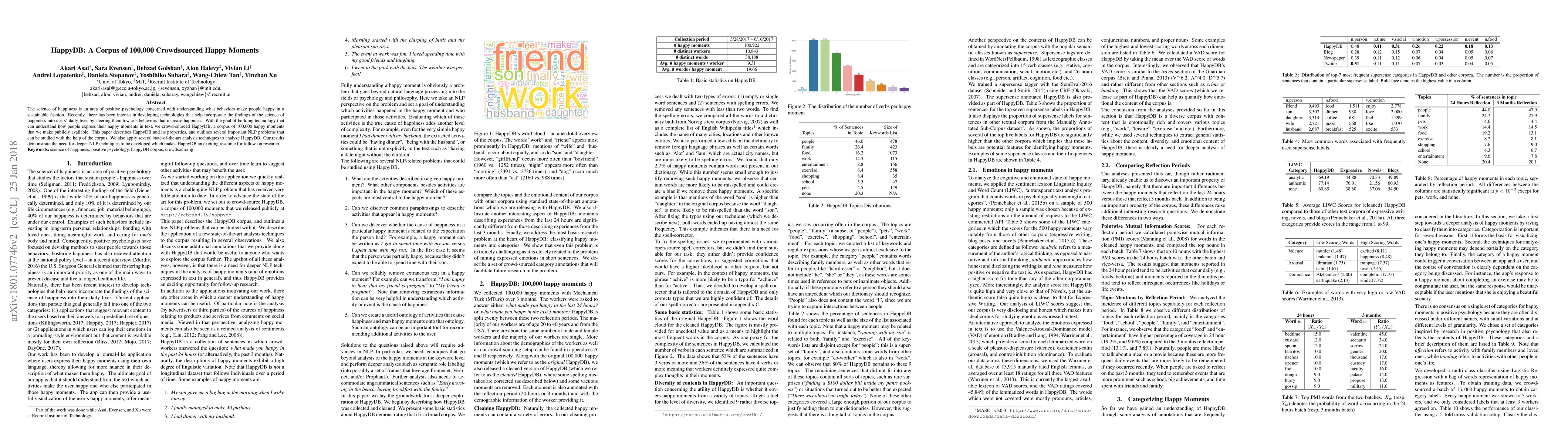 A new dataset called HappyDB contains 100,000 crowdsourced happy moments to help develop AI that understands happiness in text. This resource can aid the creation of technologies that promote sustainable happiness.