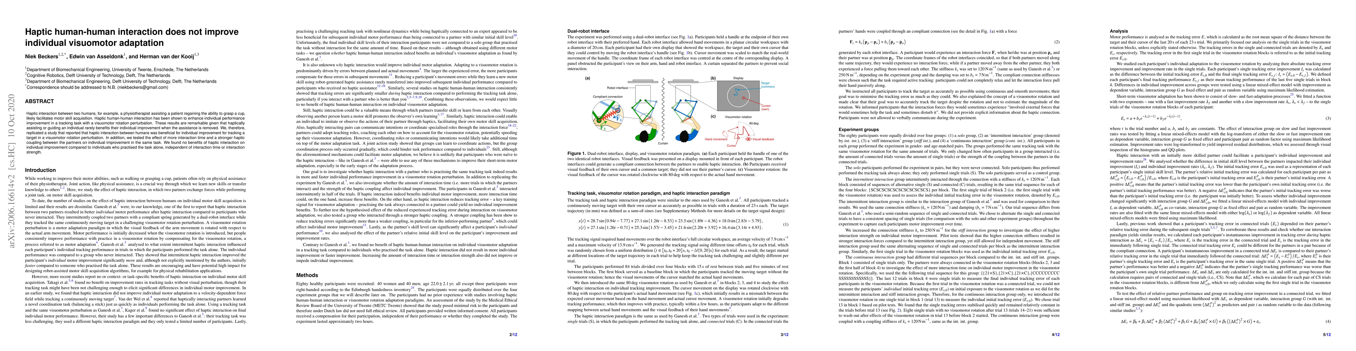 This study replicated previous findings that haptic human-human interaction doesn't enhance individual visuomotor adaptation. Despite varying interaction times and strengths, solo practice was equally effective in a visuomotor rotation task, challenging the assumed benefits of haptic assistance in motor skill acquisition.
