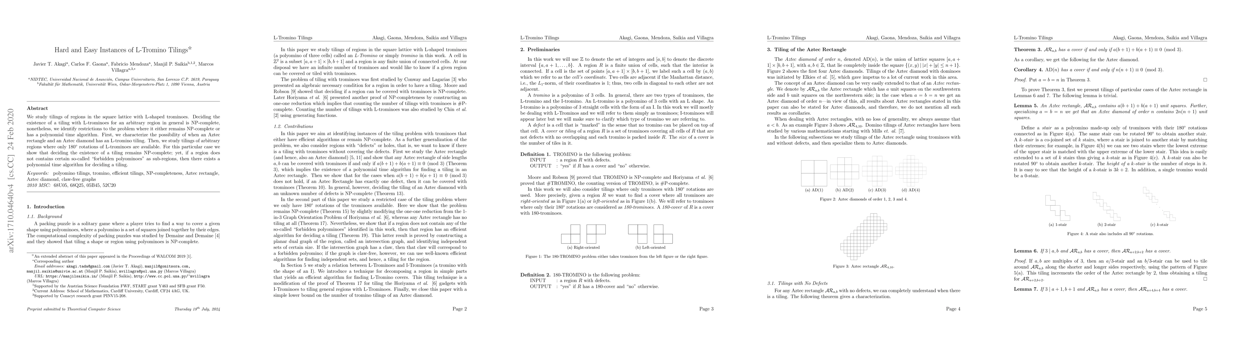 We study tilings of regions in the square lattice with L-shaped trominoes. Deciding the existence of a tiling with L-trominoes for an arbitrary region in general is NP-complete, nonetheless, we identify restrictions to the problem where it either remains NP-complete or has a polynomial time algorithm. First, we characterize the possibility of when an Aztec rectangle and an Aztec diamond has an L-tromino tiling. Then, we study tilings of arbitrary regions where only $180^\circ$ rotations of L-trominoes are available. For this particular case we show that deciding the existence of a tiling remains NP-complete; yet, if a region does not contains certain so-called "forbidden polyominoes" as sub-regions, then there exists a polynomial time algorithm for deciding a tiling.