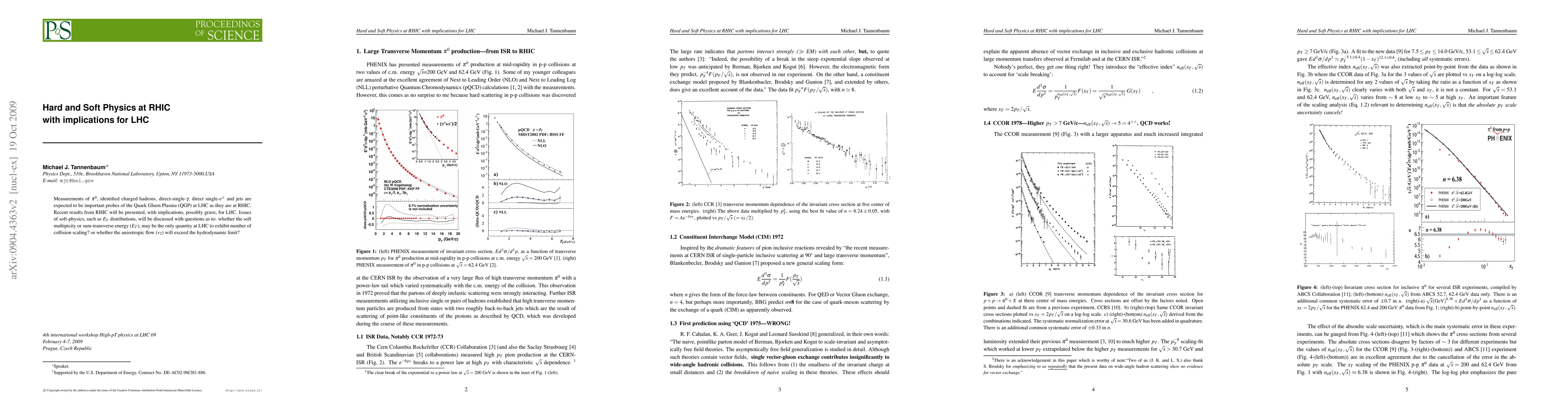 Measurements of $\pi^0$, identified charged hadrons, direct-single-$\gamma$, direct single-$e^{\pm}$ and jets are expected to be important probes of the Quark Gluon Plasma (QGP) at LHC as they are at RHIC. Recent results from RHIC will be presented, with implications, possibly grave, for LHC. Issues of soft-physics, such as $E_T$ distributions, will be discussed with questions as to: whether the soft multipicity or sum-transverse energy ($E_T$), may be the only quantity at LHC to exhibit number of collision scaling? or whether the anisotropic flow ($v_2$) will exceed the hydrodynamic limit?