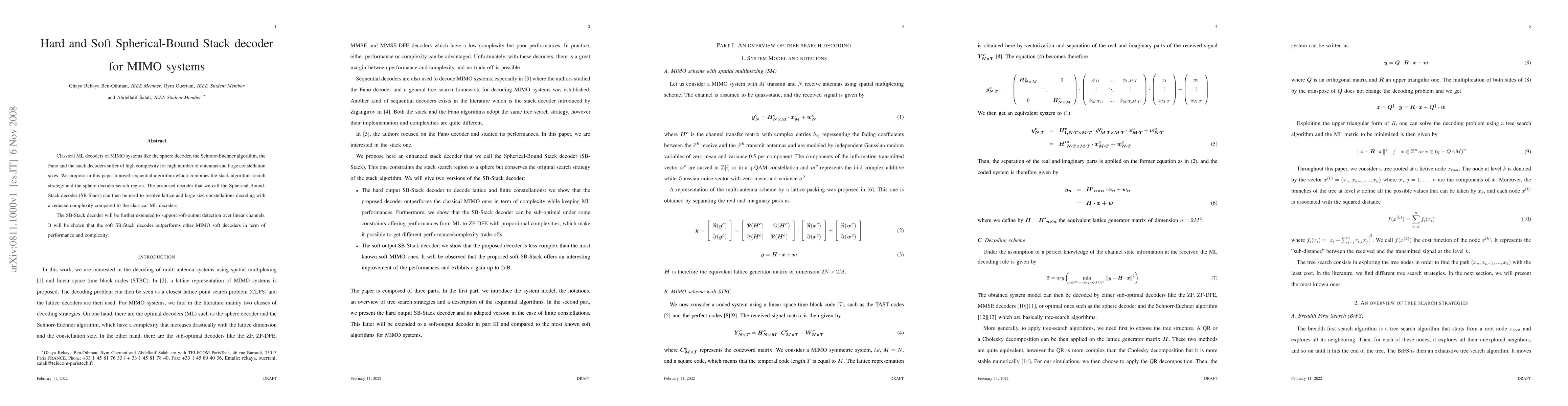 This paper introduces a novel Spherical-Bound Stack (SB-Stack) decoder for MIMO systems that combines the stack algorithm and sphere decoder to reduce complexity. The SB-Stack decoder also supports soft-output detection, outperforming other MIMO soft decoders in both performance and complexity.