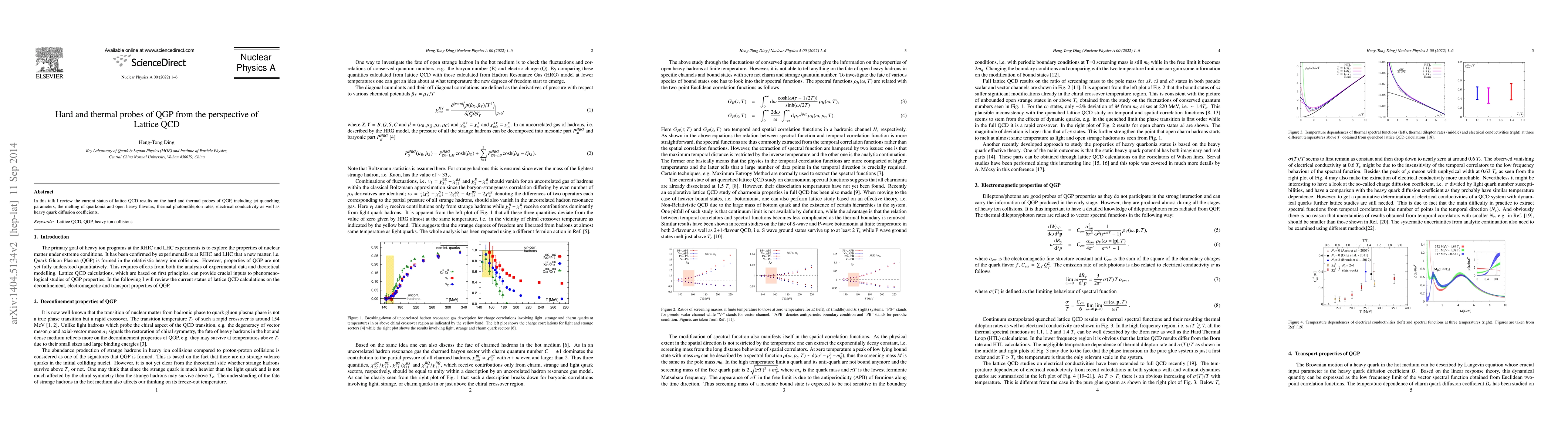 In this talk I review the current status of lattice QCD results on the hard and thermal probes of QGP, including jet quenching parameters, the melting of quarkonia and open heavy flavours, thermal photon/dilepton rates, electrical conductivity as well as heavy quark diffusion coefficients.