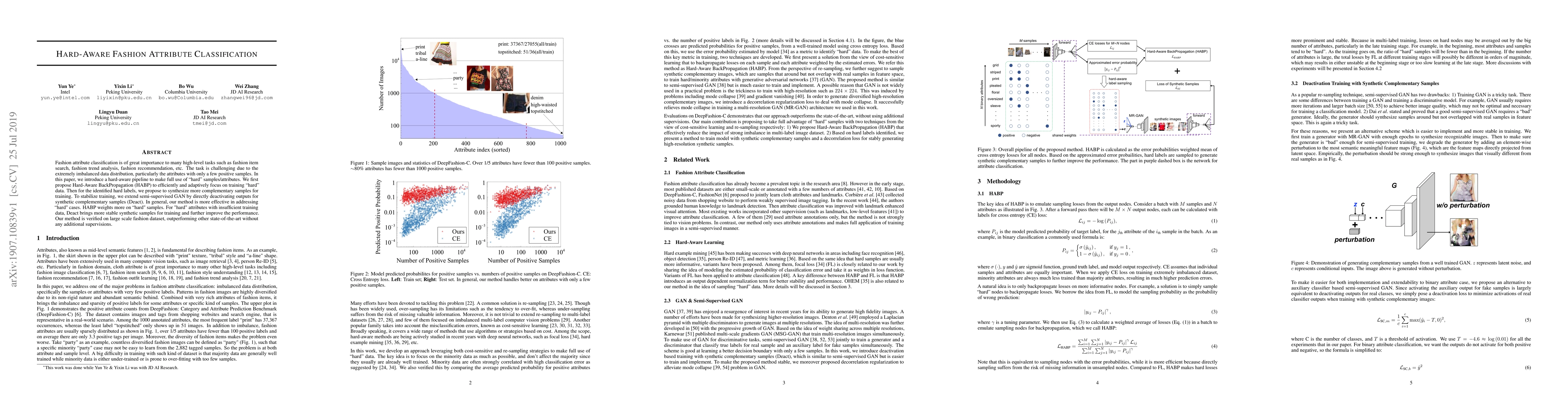 Fashion attribute classification is of great importance to many high-level tasks such as fashion item search, fashion trend analysis, fashion recommendation, etc. The task is challenging due to the extremely imbalanced data distribution, particularly the attributes with only a few positive samples. In this paper, we introduce a hard-aware pipeline to make full use of "hard" samples/attributes. We first propose Hard-Aware BackPropagation (HABP) to efficiently and adaptively focus on training "hard" data. Then for the identified hard labels, we propose to synthesize more complementary samples for training. To stabilize training, we extend semi-supervised GAN by directly deactivating outputs for synthetic complementary samples (Deact). In general, our method is more effective in addressing "hard" cases. HABP weights more on "hard" samples. For "hard" attributes with insufficient training data, Deact brings more stable synthetic samples for training and further improve the performance. Our method is verified on large scale fashion dataset, outperforming other state-of-the-art without any additional supervisions.