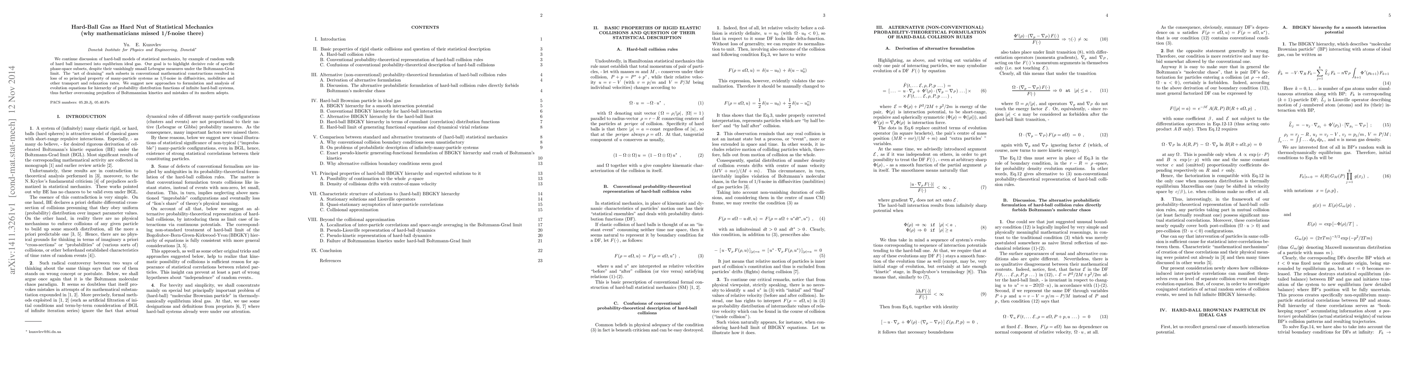 Researchers re-evaluate hard-ball models of statistical mechanics, highlighting the crucial role of specific phase-space subsets in overcoming a common limitation related to 1/f-noise in diffusion rates and other transport properties. They propose new approaches to analyzing evolution equations for infinite hard-ball systems.