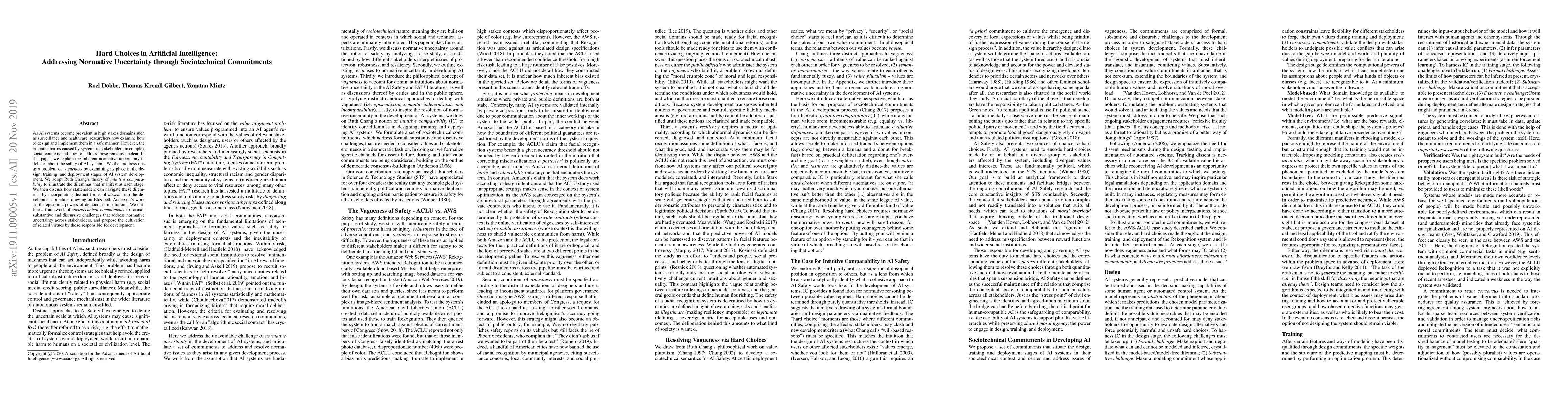 This paper explores the normative uncertainty in AI safety, emphasizing the dilemmas arising from vagueness in design and deployment. It proposes a framework of sociotechnical commitments to navigate these challenges, advocating for the integration of stakeholder dissent and virtues in AI development.