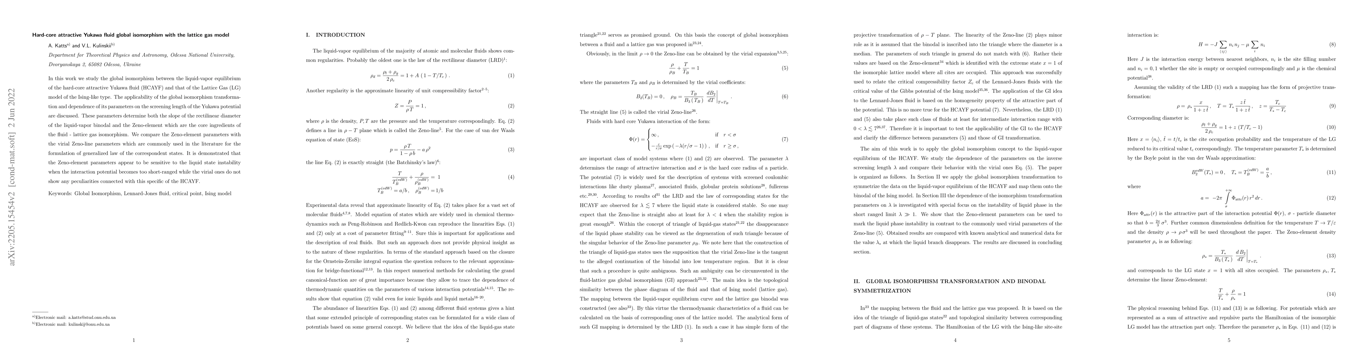 This paper explores the global isomorphism between the hard-core attractive Yukawa fluid (HCAYF) and the Ising-like Lattice Gas model, focusing on the transformation parameters' dependence on the Yukawa potential's screening length. It reveals that the Zeno-element parameters are sensitive to liquid state instability, unlike the virial parameters, which do not reflect this particularity of the HCAYF.