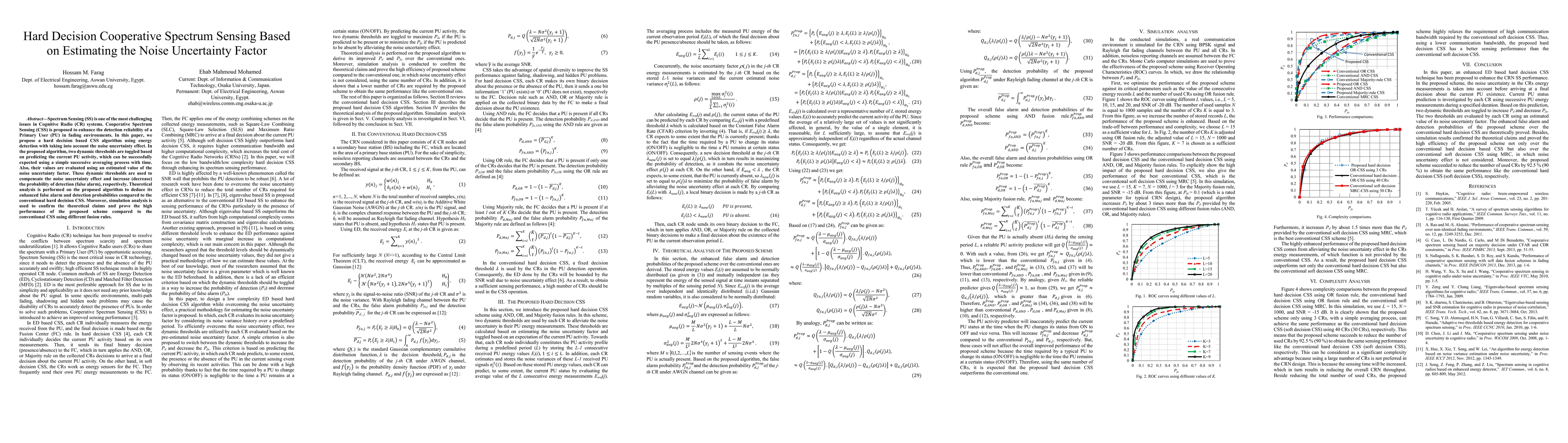 This paper proposes a hard decision-based Cooperative Spectrum Sensing algorithm that enhances detection reliability in Cognitive Radio systems by dynamically adjusting thresholds based on noise uncertainty estimation. The algorithm uses a successive averaging process to predict Primary User activity and adjusts thresholds to optimize detection and false alarm probabilities, demonstrating improved performance over conventional methods.