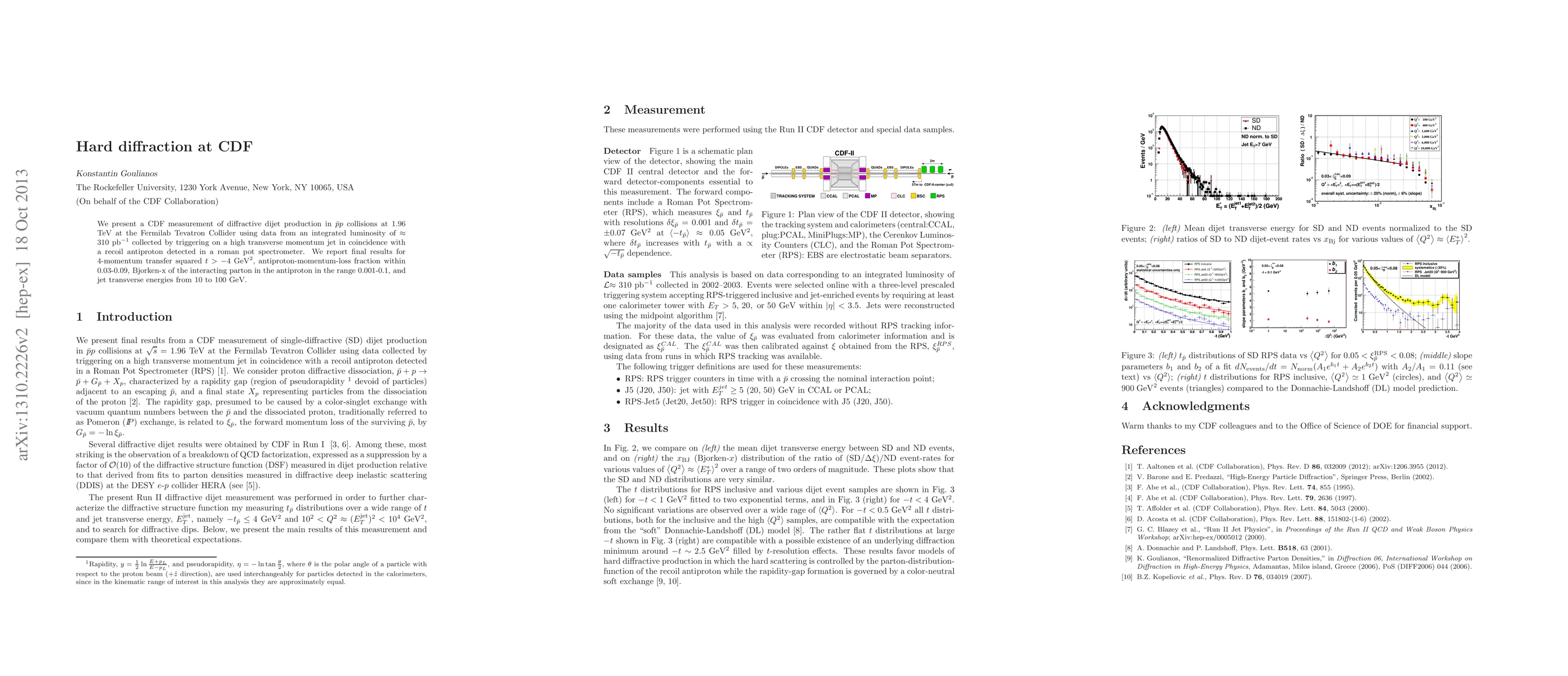 We present a CDF measurement of diffractive dijet production in $\bar{p}p$ collisions at 1.96 TeV at the Fermilab Tevatron Collider using data from an integrated luminosity of $\approx 310$ pb$^{-1}$ collected by triggering on a high transverse momentum jet in coincidence with a recoil antiproton detected in a roman pot spectrometer. We report final results for 4-momentum transfer squared $t>-4$ GeV$^2$, antiproton-momentum-loss fraction within 0.03-0.09, Bjorken-x of the interacting parton in the antiproton in the range 0.001-0.1, and jet transverse energies from 10 to 100 GeV.