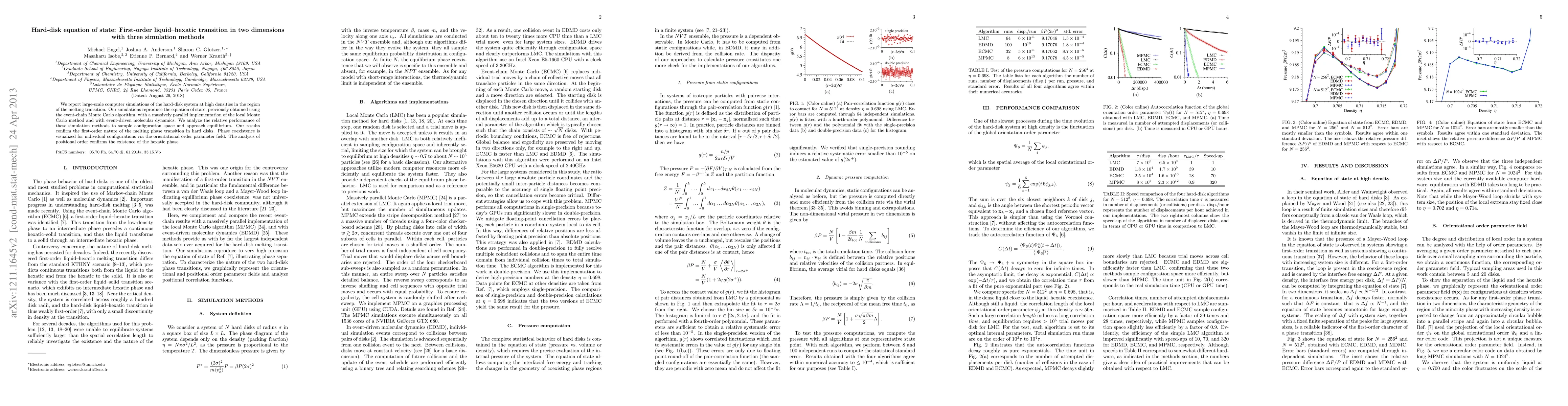 Researchers used multiple simulation methods to study the melting transition of hard disks in two dimensions, confirming a first-order phase transition and the existence of a hexatic phase.