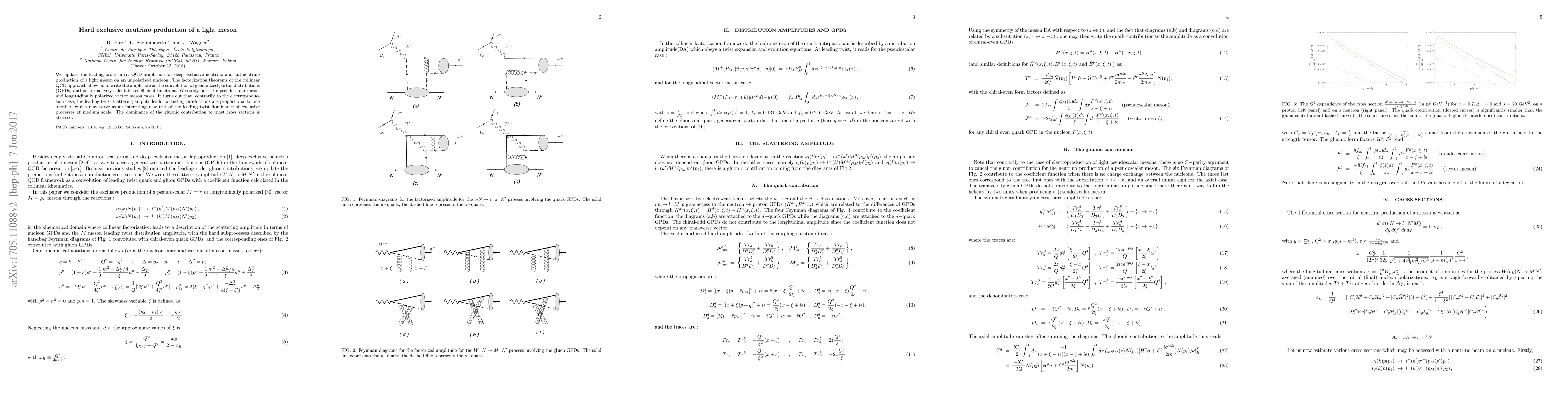 We update the leading order in $\alpha_s$ QCD amplitude for deep exclusive neutrino and antineutrino production of a light meson on an unpolarized nucleon. The factorization theorems of the collinear QCD approach allow us to write the amplitude as the convolution of generalized parton distributions (GPDs) and perturbatively calculable coefficient functions. We study both the pseudoscalar meson and longitudinally polarized vector meson cases. It turns out that, contrarily to the electroproduction case, the leading twist scattering amplitudes for $\pi$ and $\rho_L$ productions are proportional to one another, which may serve as an interesting new test of the leading twist dominance of exclusive processes at medium scale. The dominance of the gluonic contribution to most cross sections is stressed.
