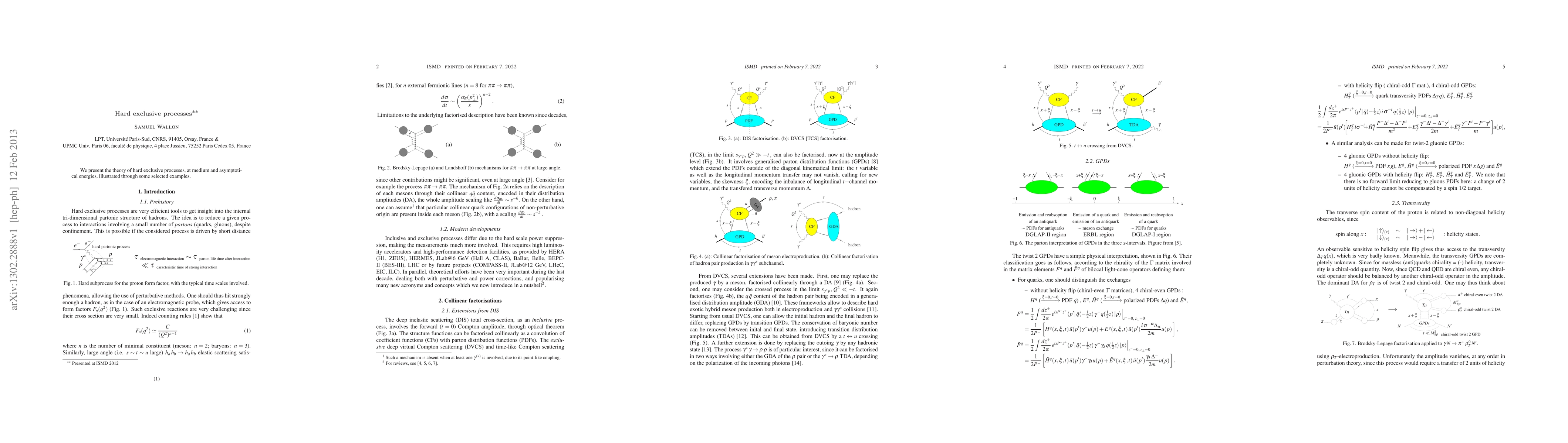 We present the theory of hard exclusive processes, at medium and asymptotical energies, illustrated through some selected examples.